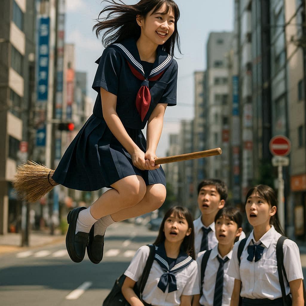(通学に、ほうきを使うのは校則で禁止ですが、違反者が絶えないらしい・・)(>_<)