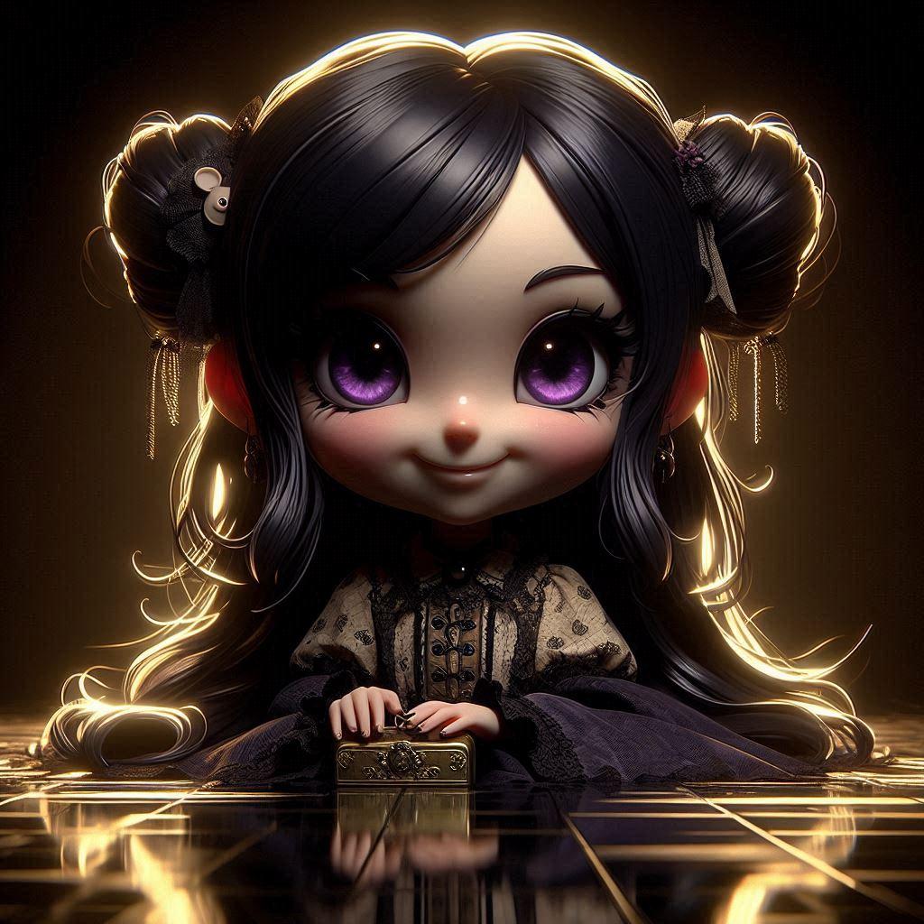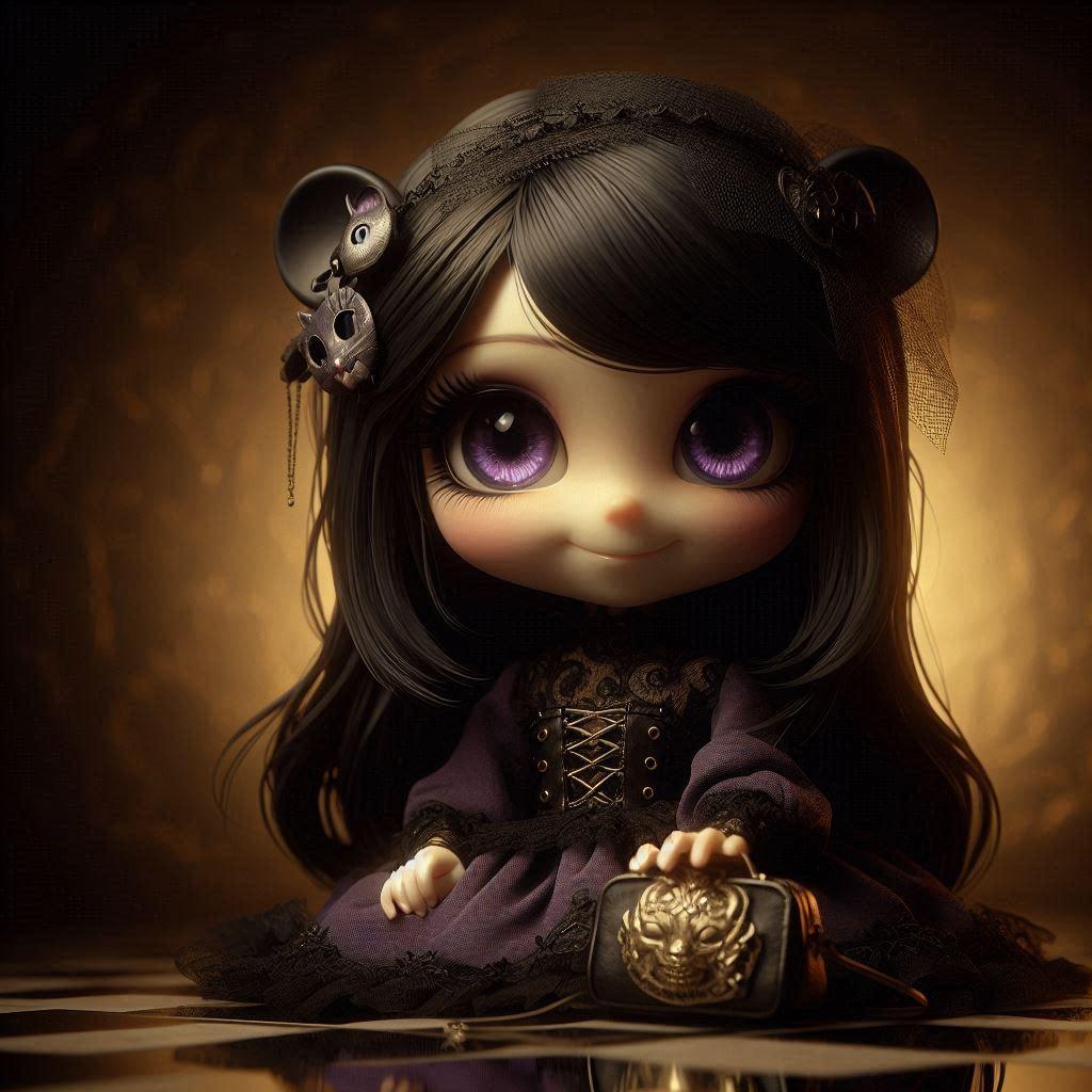 彼女が身にまとうゴシックロリータドレスは、黒と紫のコントラストが美しく、その裾からは真新しい白衣がのぞいていた。三日月型の小さな魔女帽と肘まである黒い手袋が、彼女の神秘的な雰囲気を一層際立たせる。