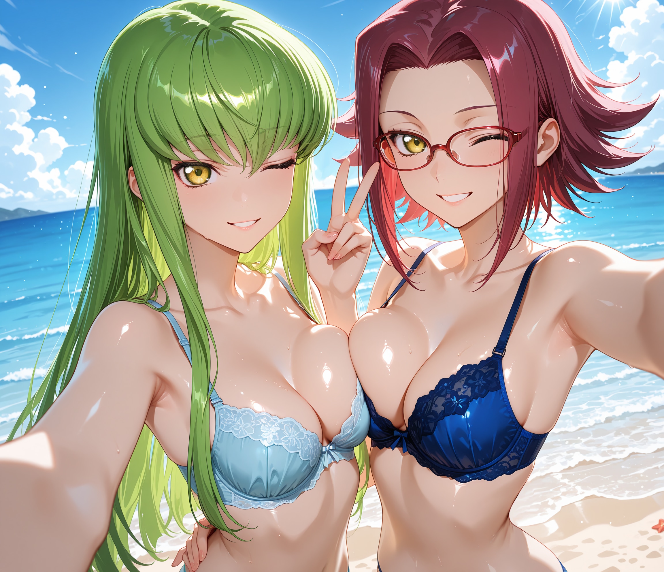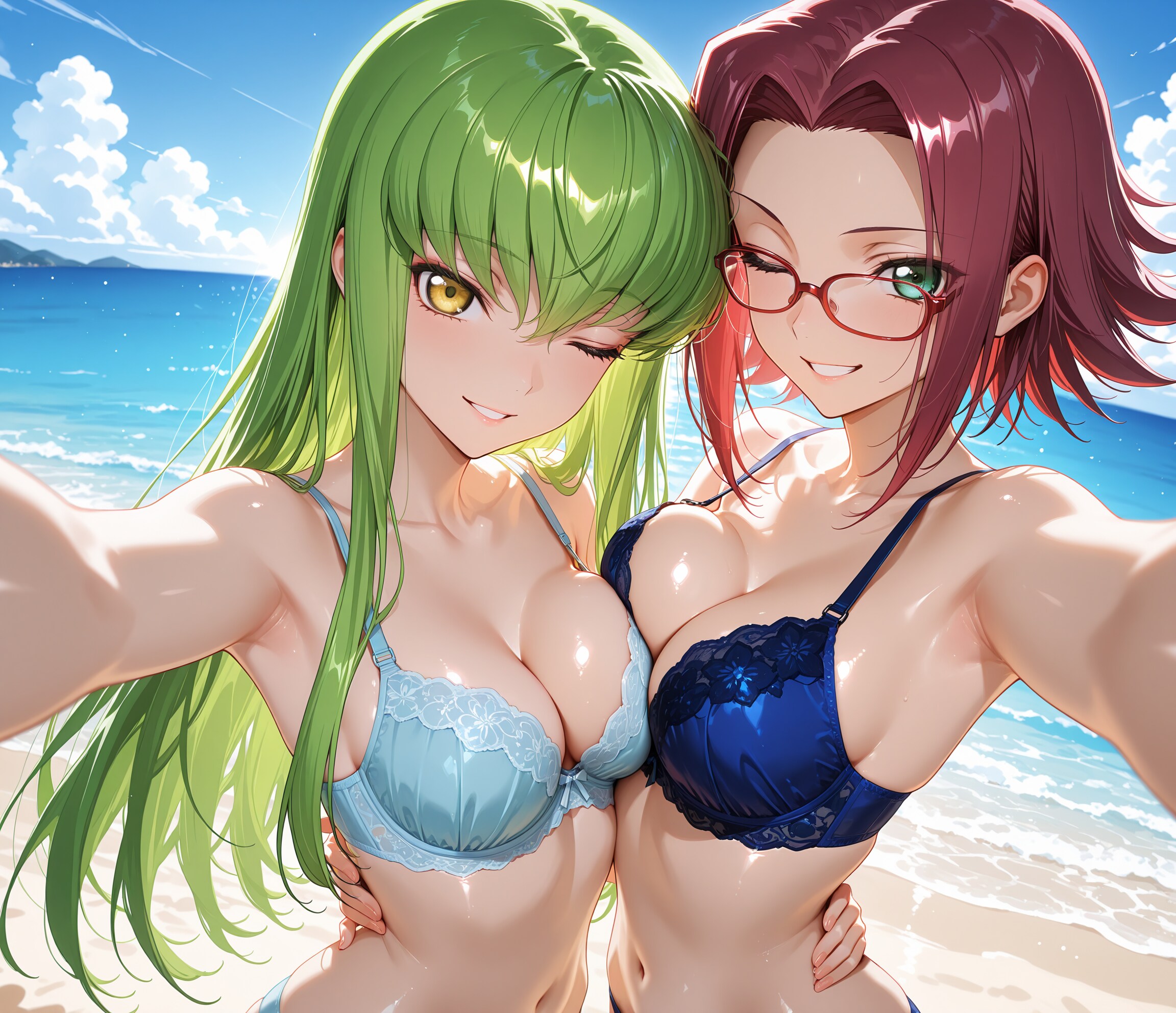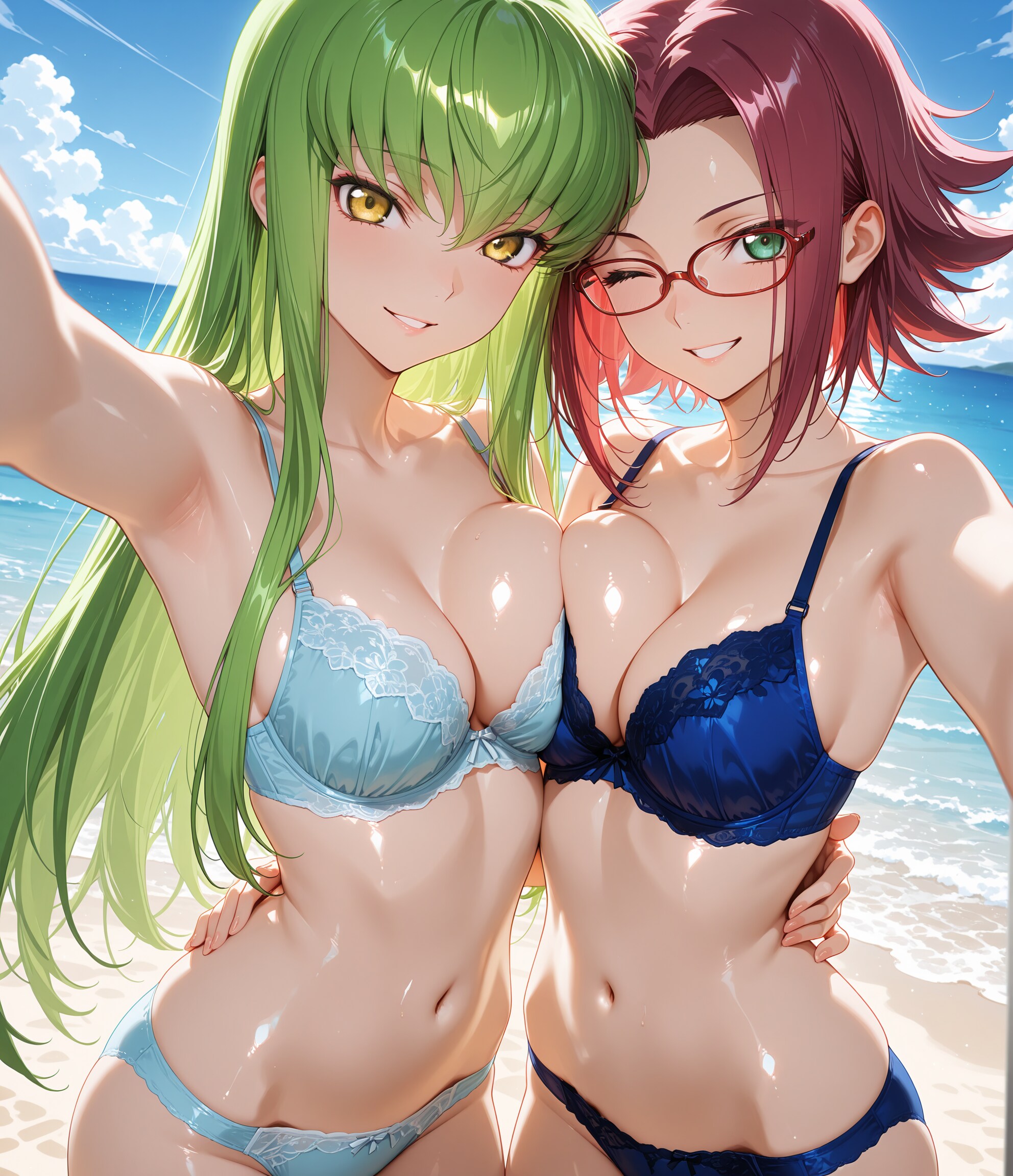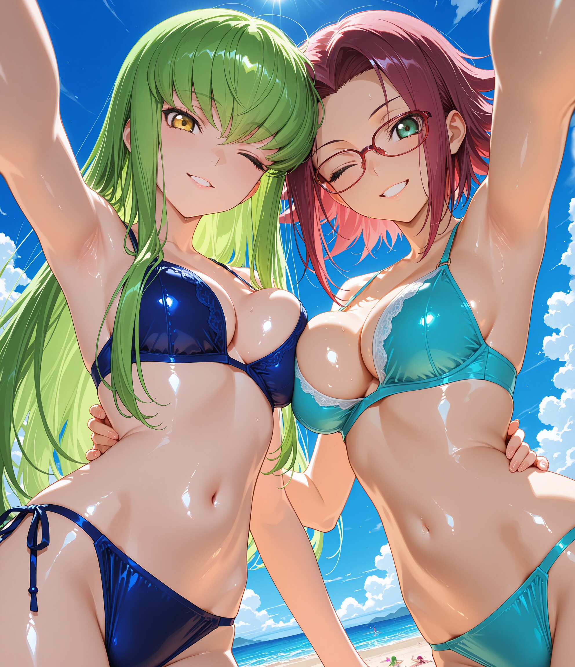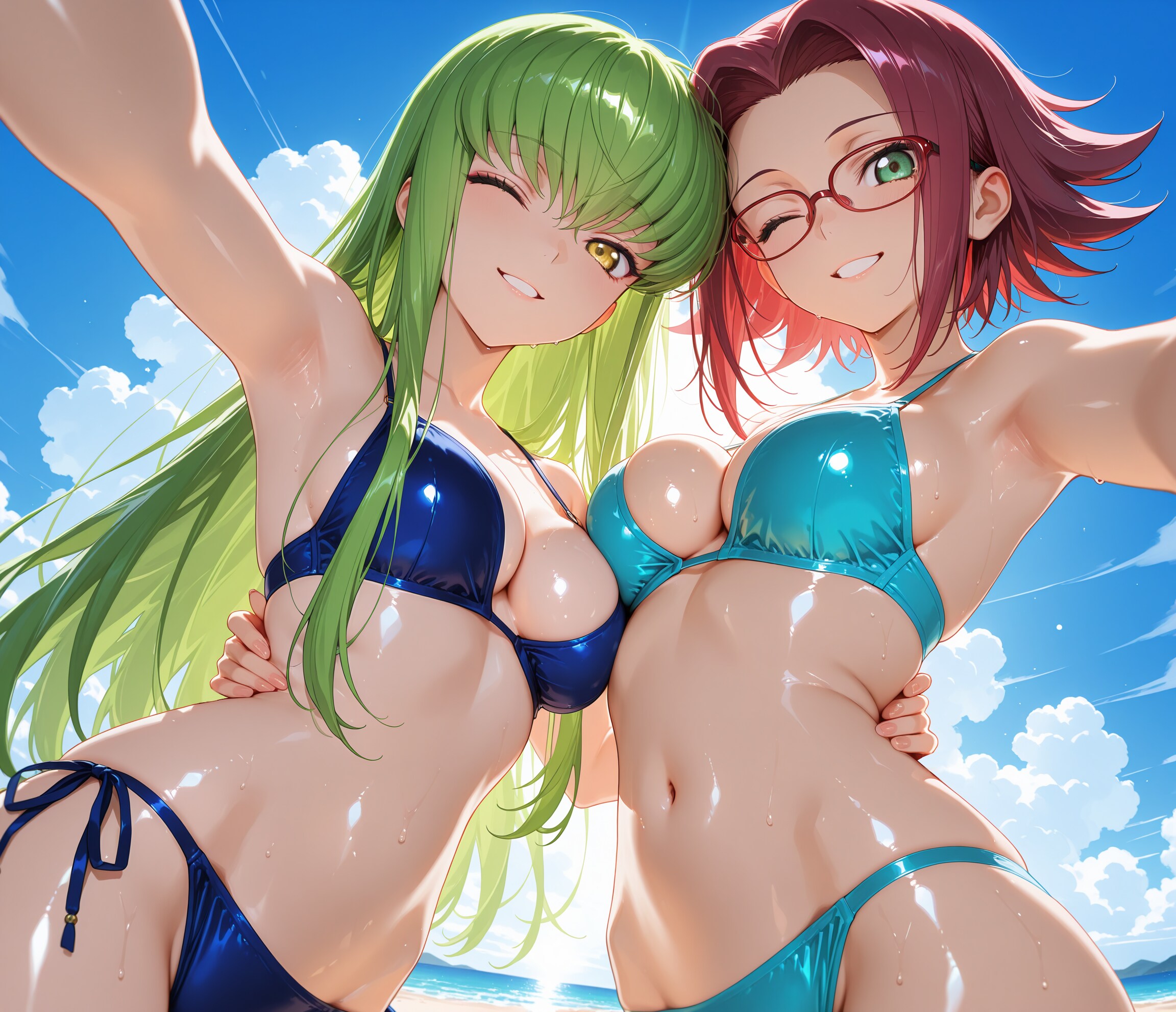 寄ってー♪撮るよー♡2人仲良く水着交換♡