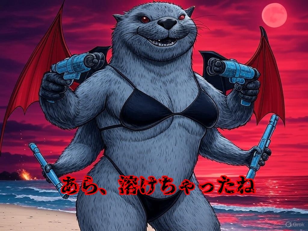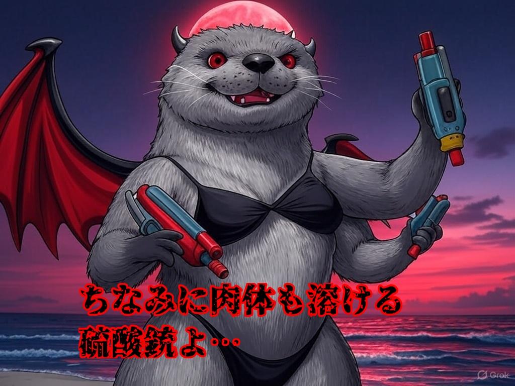 溶解銃で次々と相手の水着と肉体を溶かしていく…