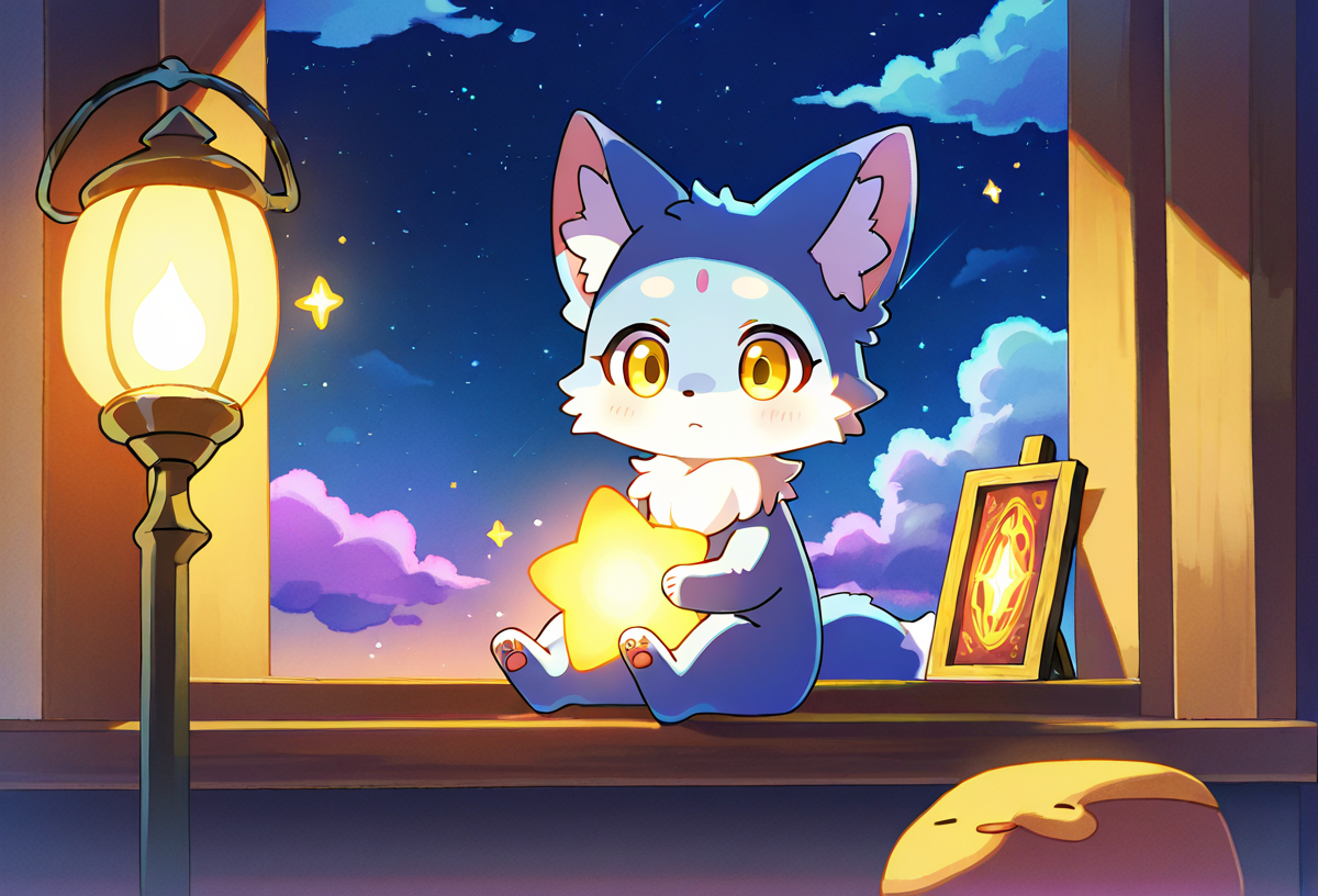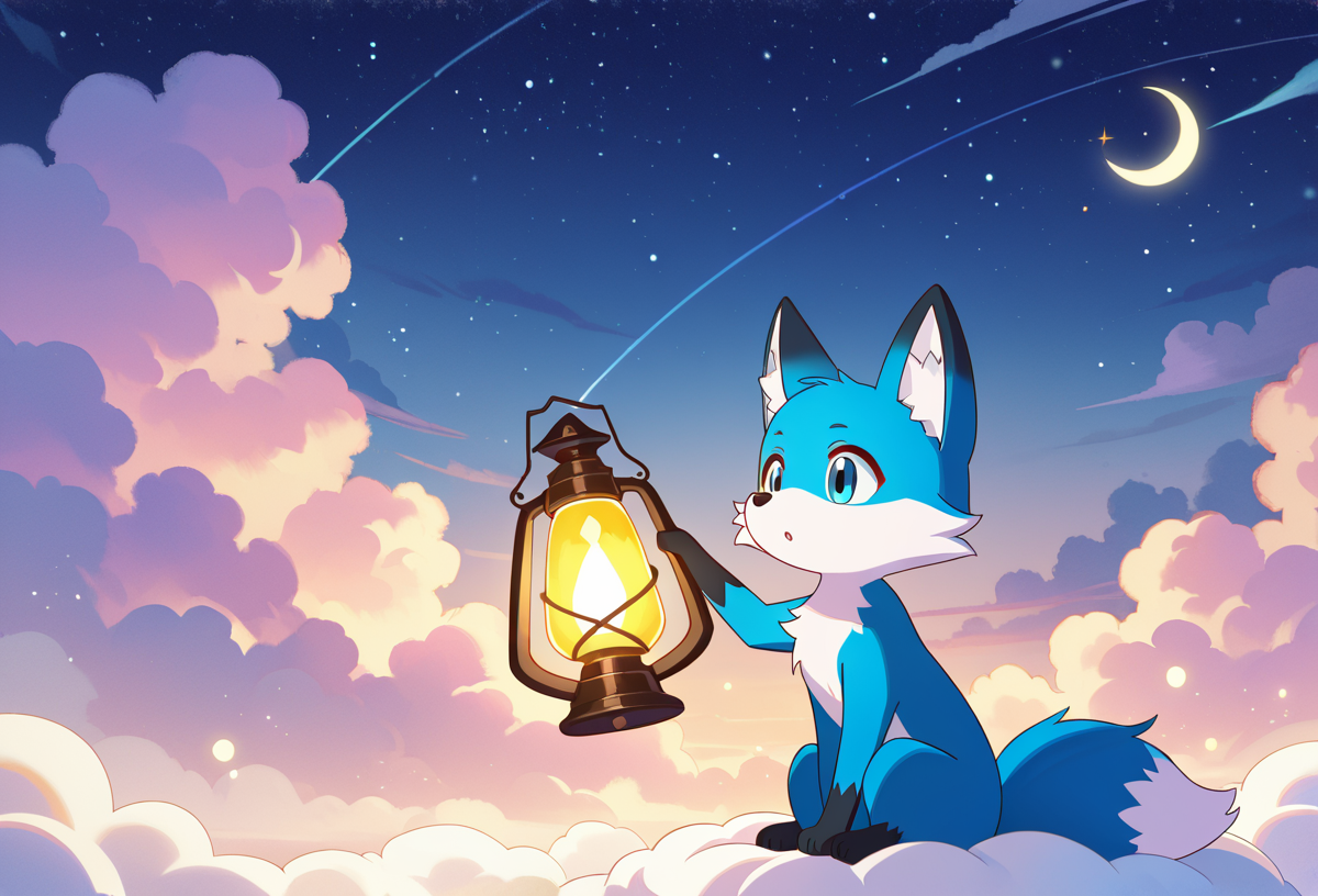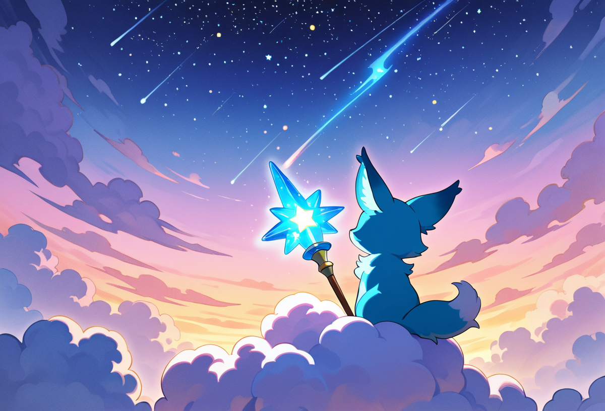 雲の上には、夜空の星たちを灯す仕事をしている小さなきつね「ルナ」が住んでいます。ルナの役割は、毎晩空に浮かぶ星の1つを磨き、光を灯して夜空を輝かせることです。彼女はとても誇りを持って仕事をしており、星を磨くための特別な「星のブラシ」を使っています。