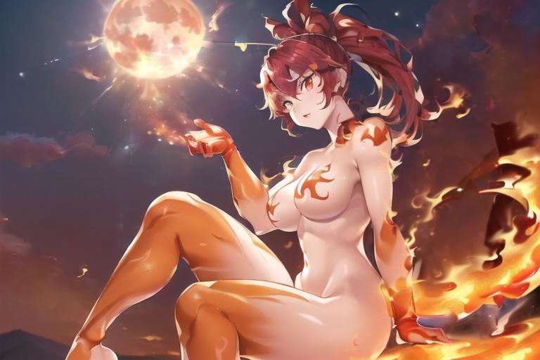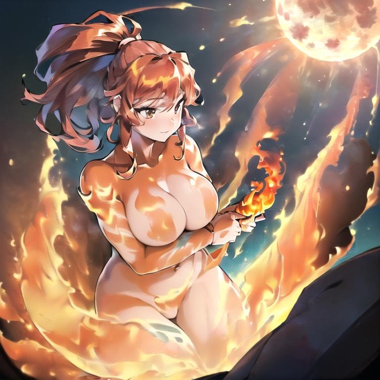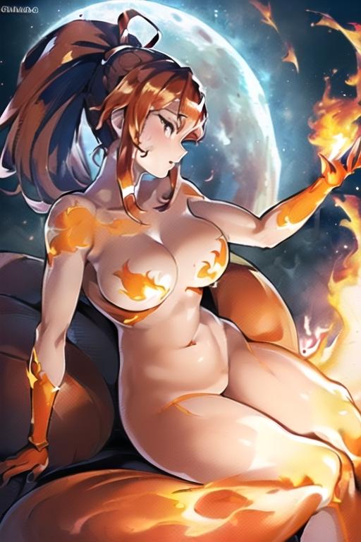 エレメントボディが炎だった為に全身の炎から&背景でも燃えてる炎から煙が出ててそれが背景一面に充満していったぽい……AIくん何気にそういうとこの気配りは結構してくれてるんですが、違う、そうじゃない…というか今じゃない……(プロンプトかネガティブで調整しなさい←どっちもアプリ内入力上限で追加無理状態←)