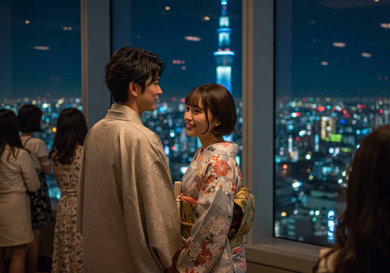 スカイツリーに登ったつもりが、夜景にスカイツリーが映っていてびっくり。東京タワーだったのかな。
