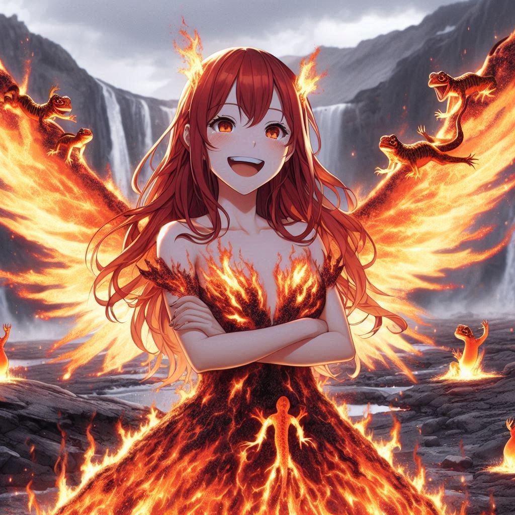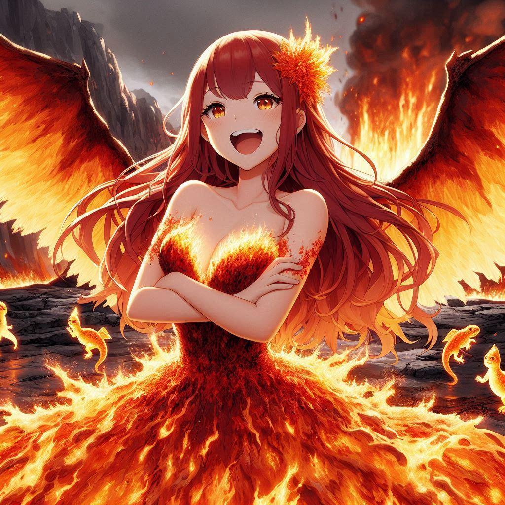 炎の精霊王と言われるイフリートの女体化をイメージして生成しました!