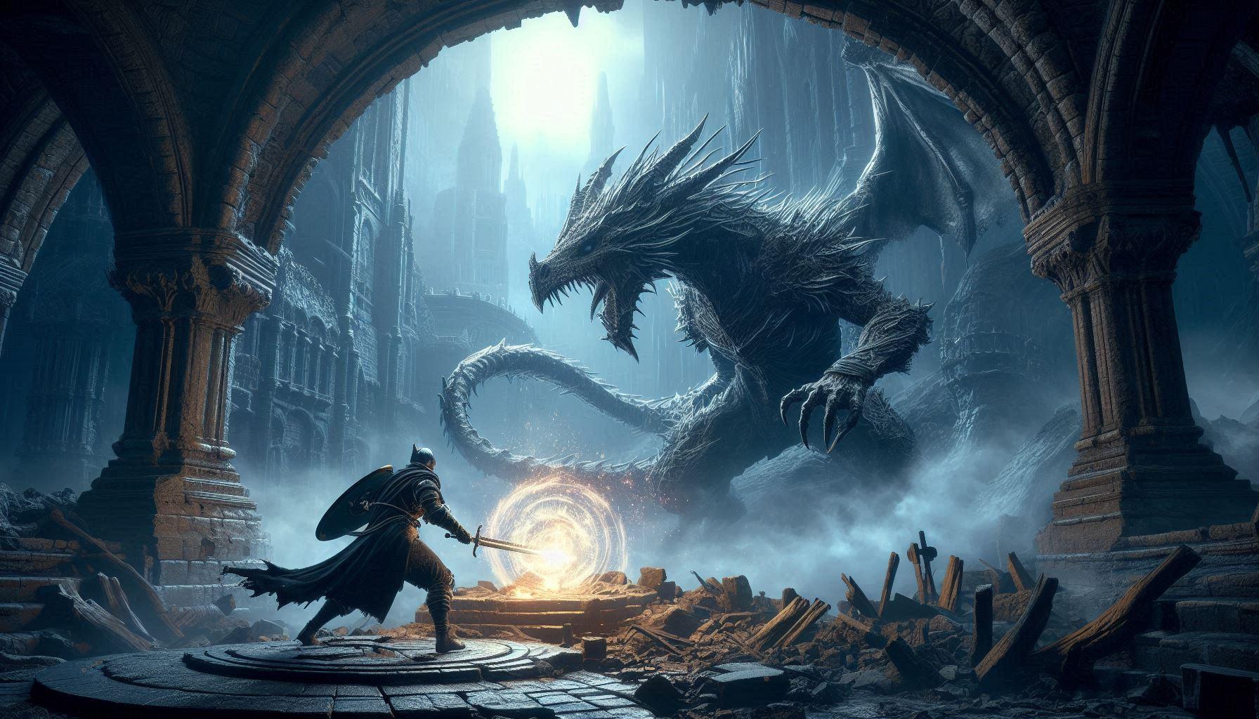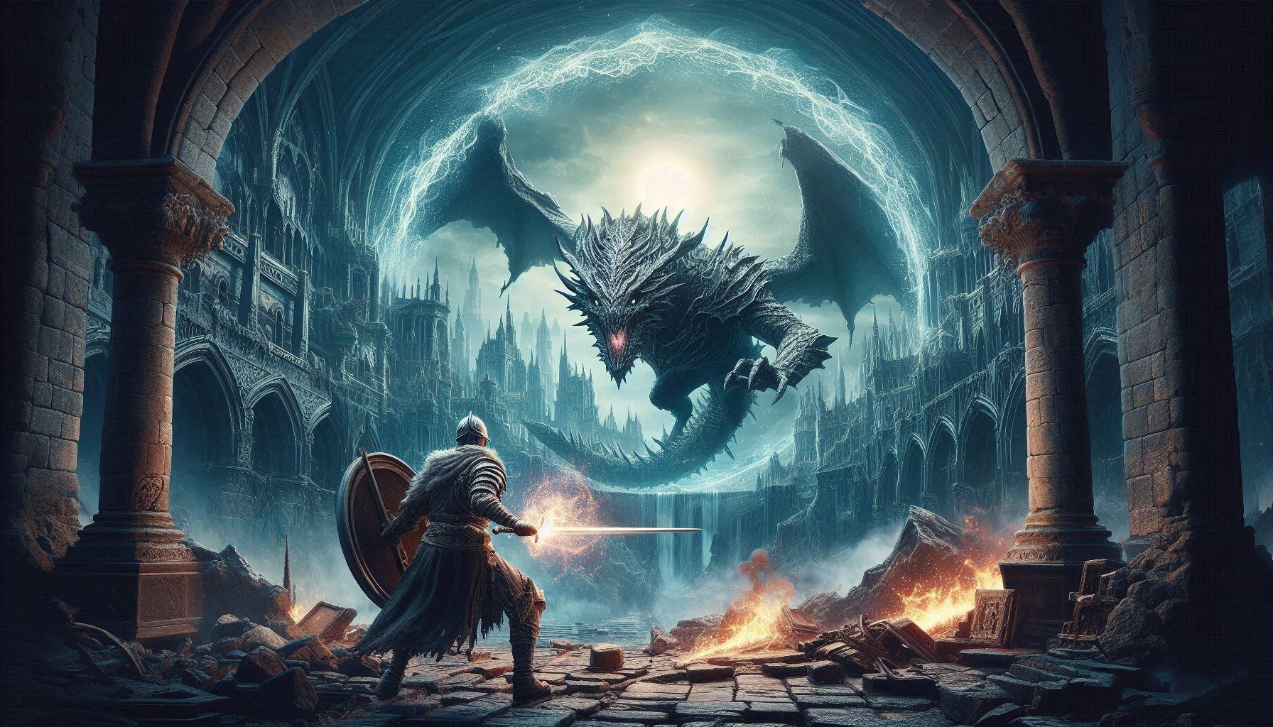 剣と魔法の世界ネタで、これと言った面白ネタが思い浮かばなかったので💦・・Dalleの描写力に頼った正統派?剣と魔法の世界イラストです(歳を取ると発想力も低下気味で嫌ですなぁ~😭💦)。
