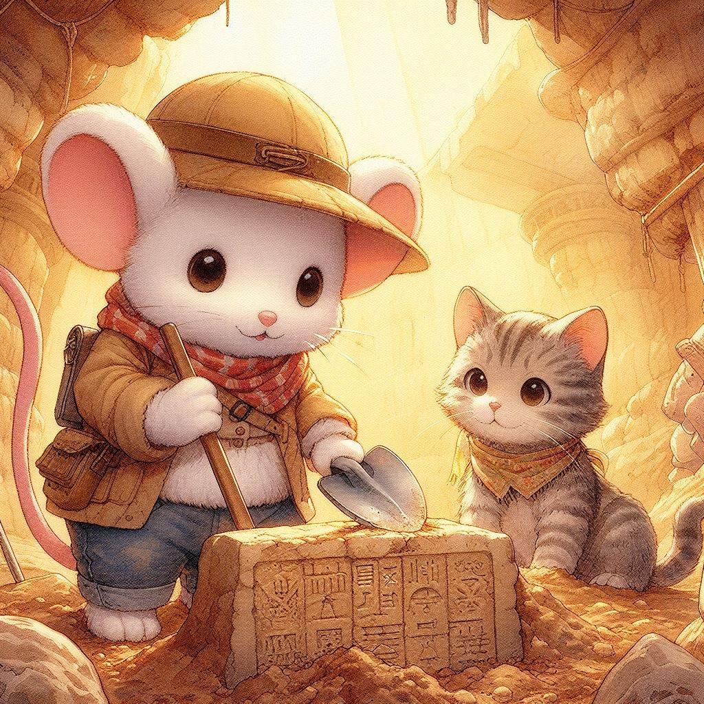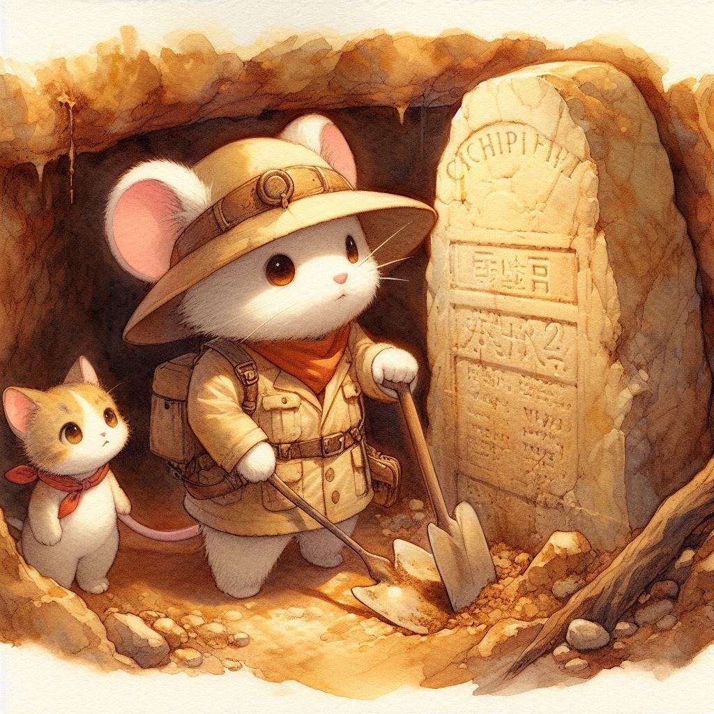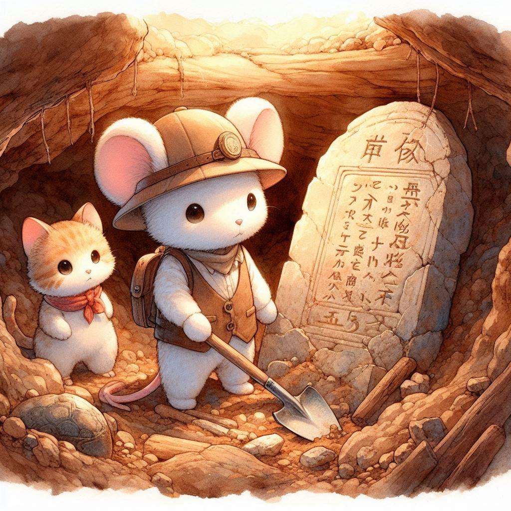 考古学者になったねずみくん。地層の中から見つかった石碑には?