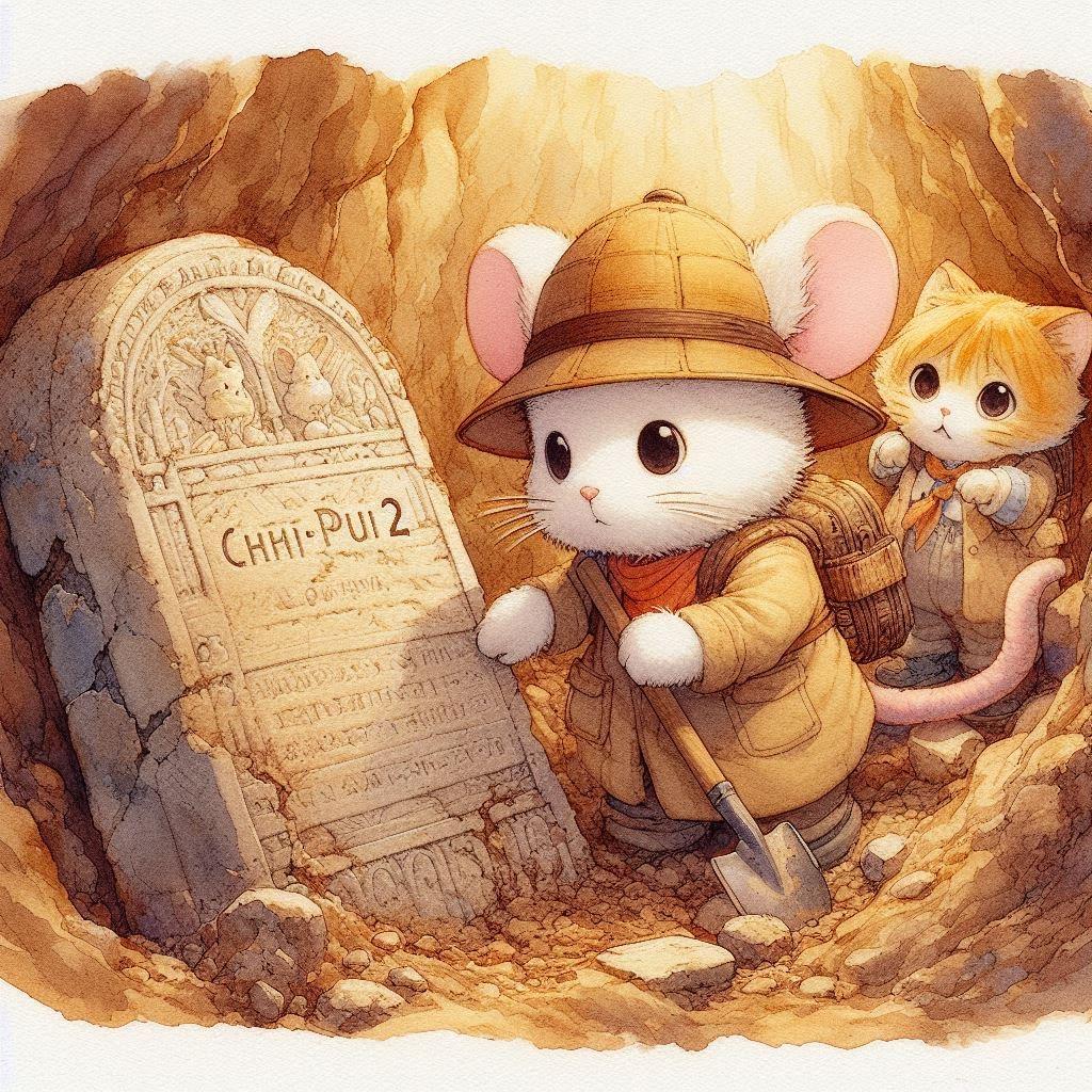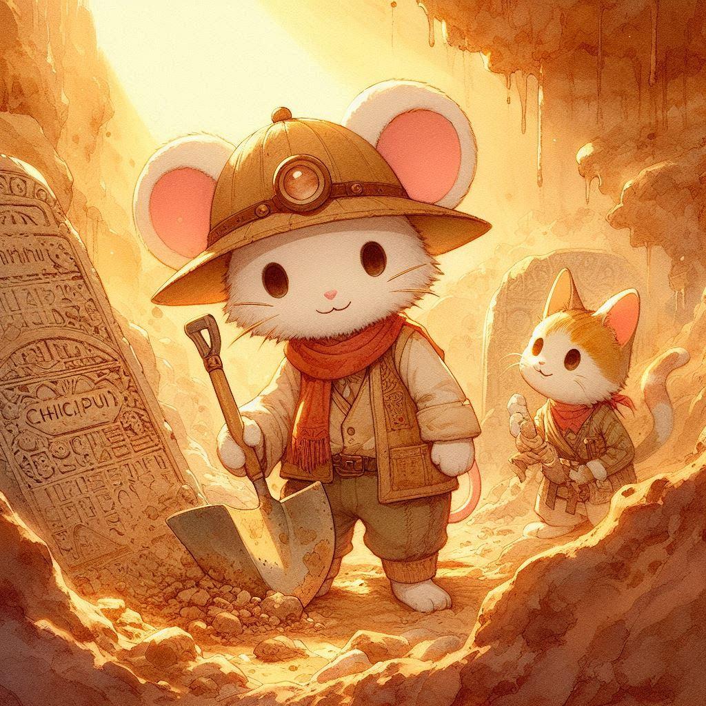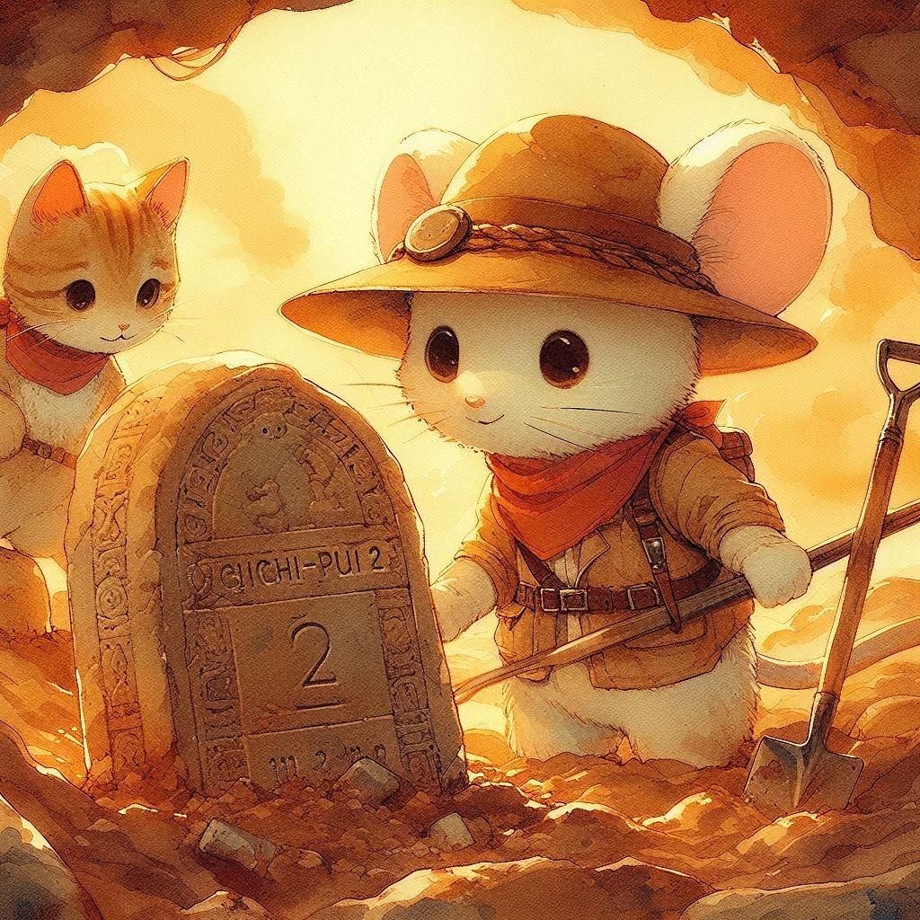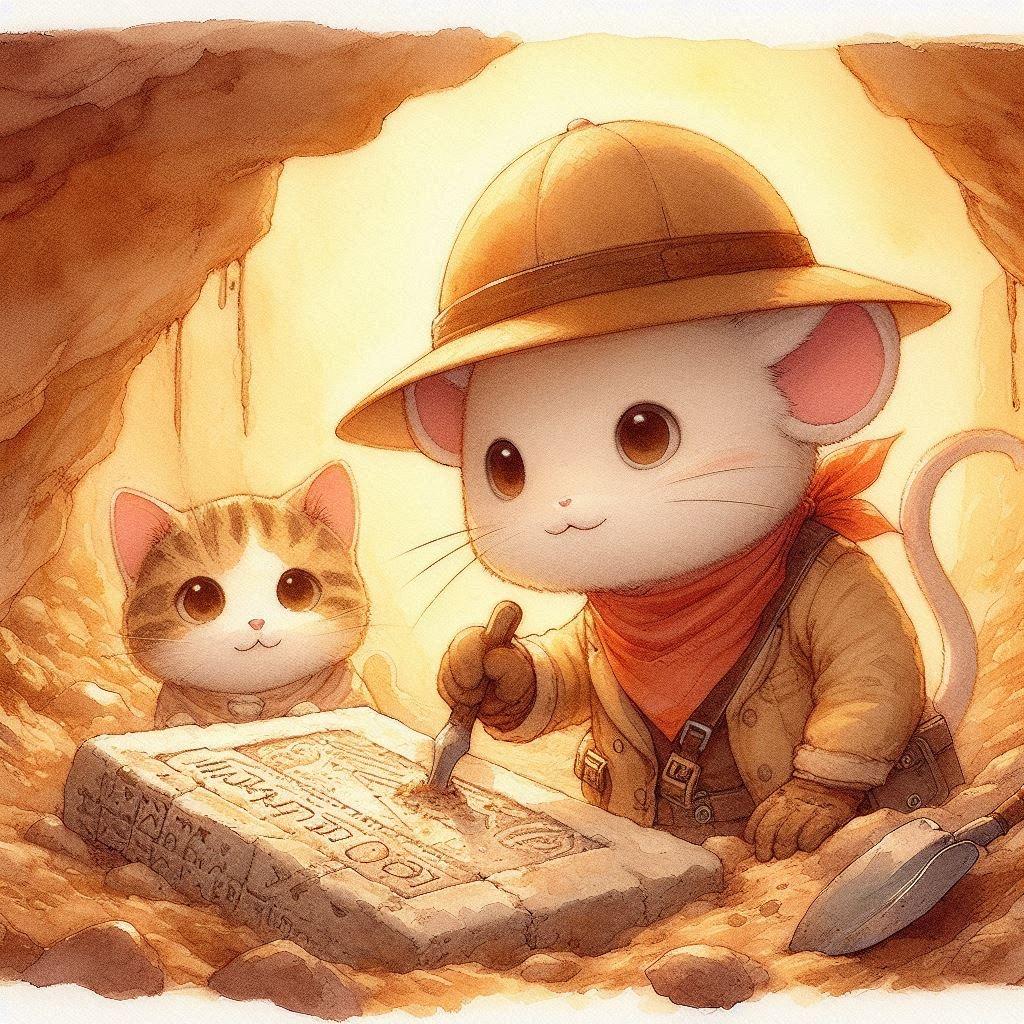 考古学者になったねずみくん。地層の中から見つかった石碑には?