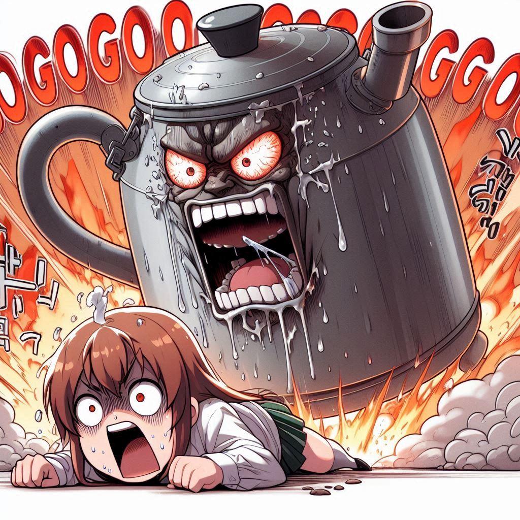 理不尽に八つ当たりされたやかんの逆襲が始まる(;・∀・)