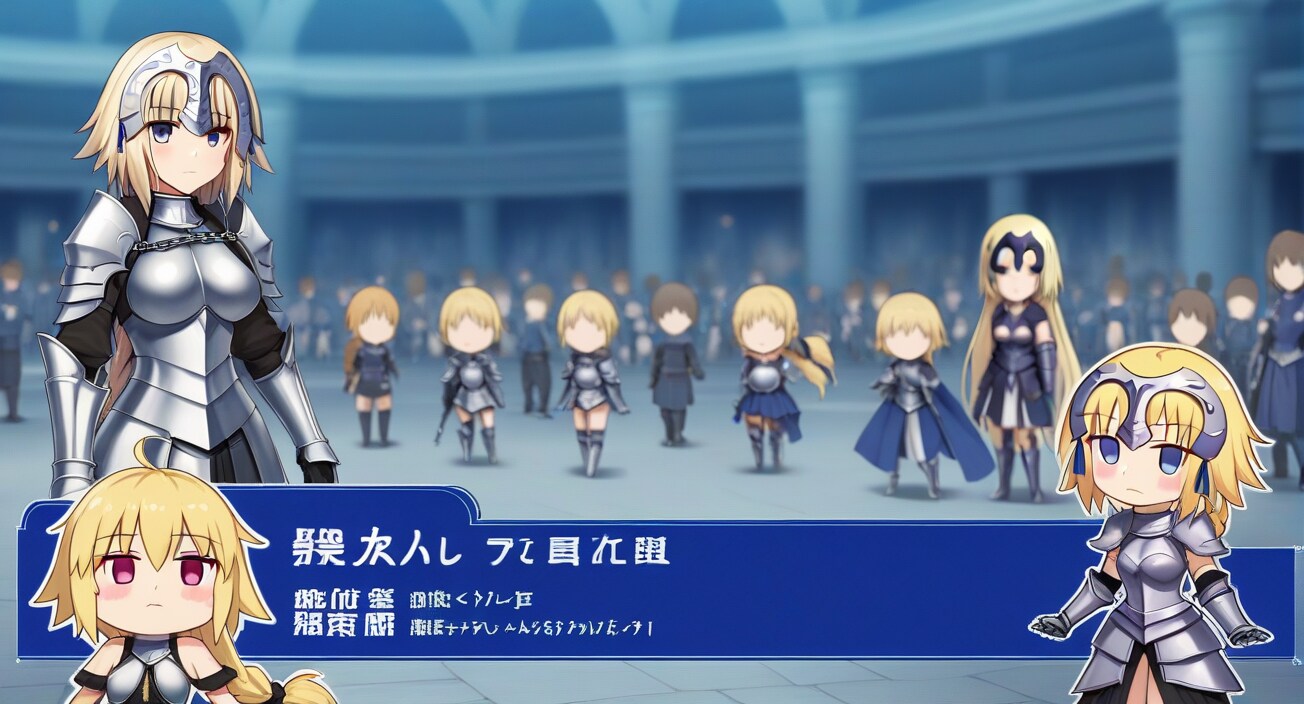 「Jeanne d'Arc」で生成→stable diffusionの機能で文章化。→モデルを変更して萌えキャラ化
