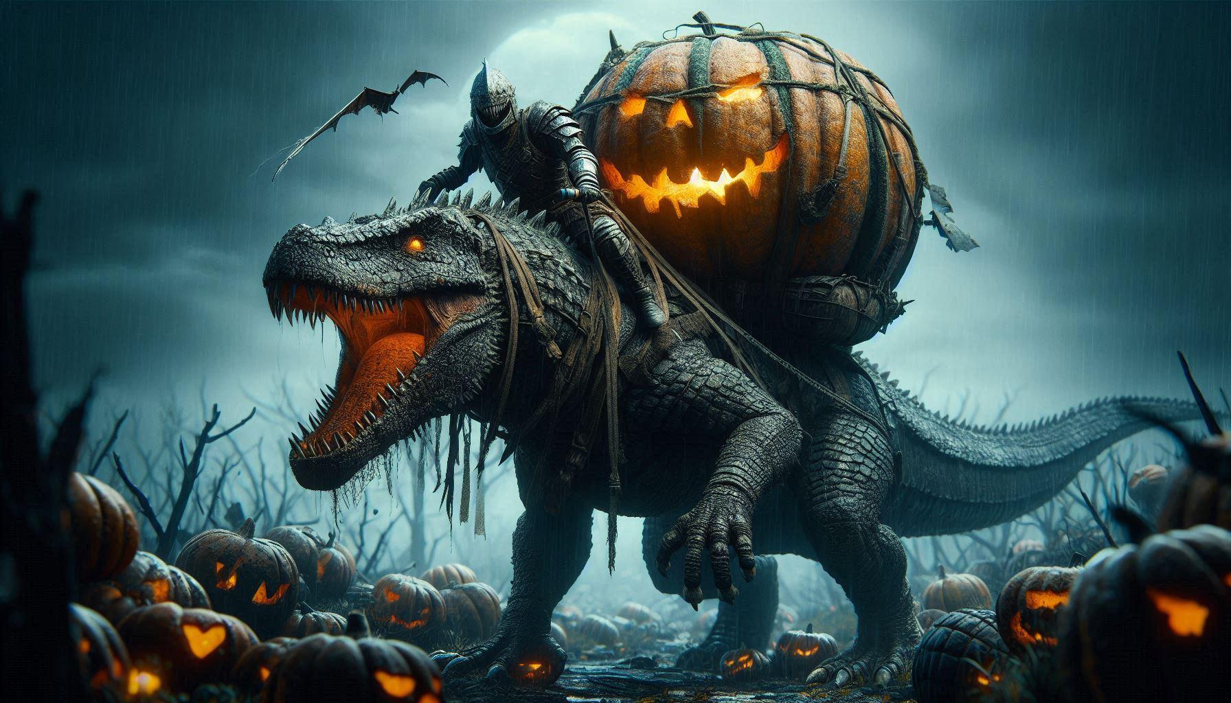 最後の1枚は、ハロウィンに投稿した”かぼちゃコモド(小型)”に乗ってる騎士です♪。