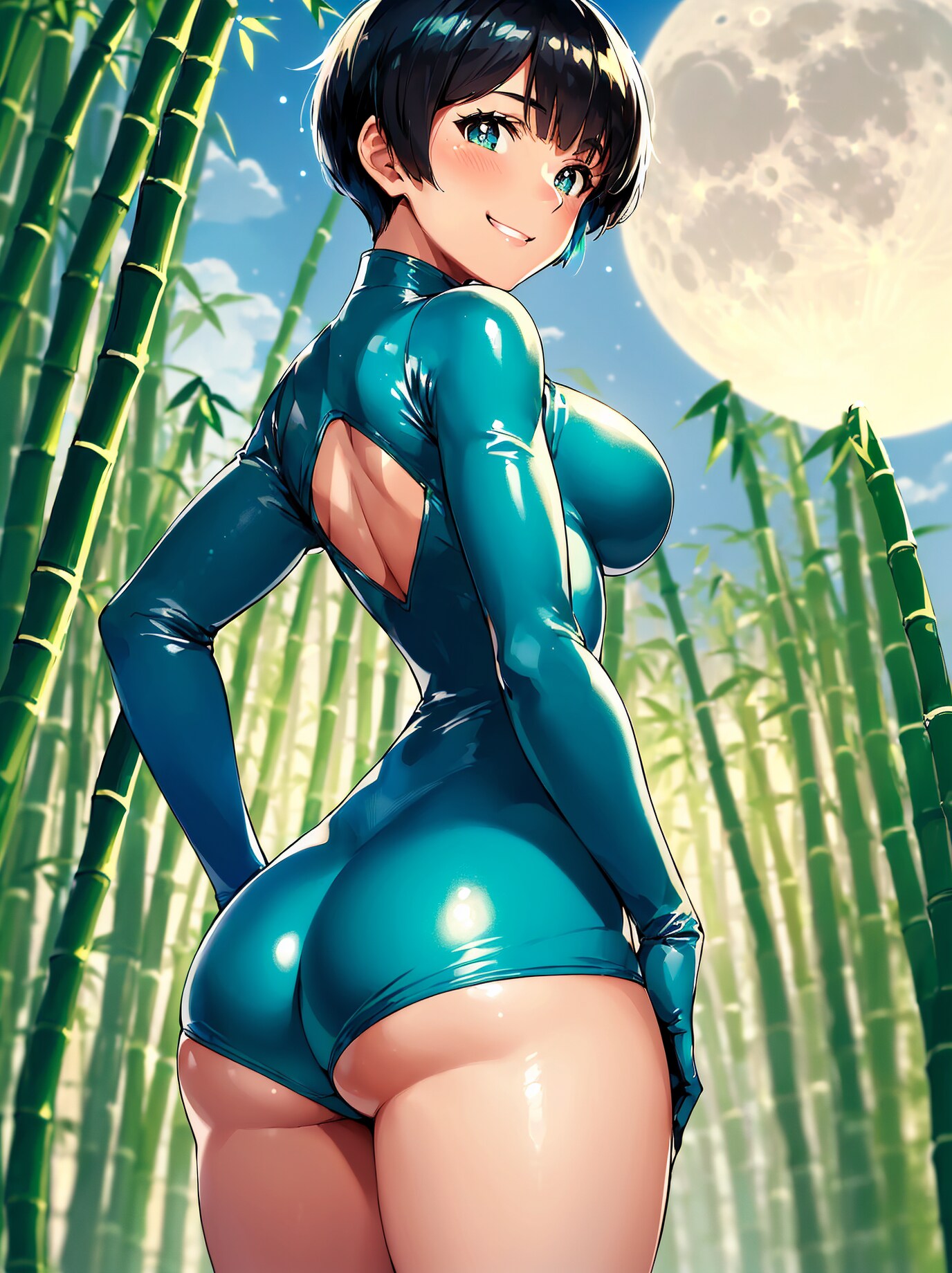 竹と月とボディスーツ