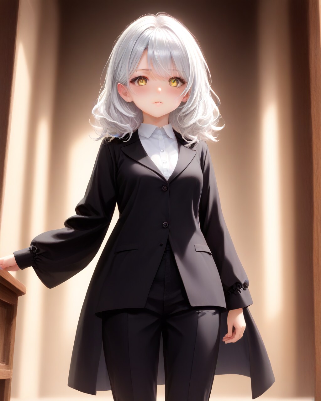 以前の銀髪女執事さんをキャラデザ安定するまでプロンプト調整してついでにでた私服っぽいものを添えて