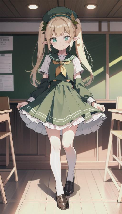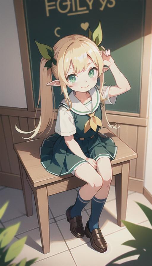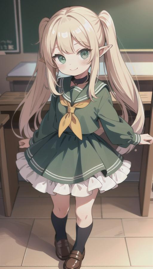 個人的にエルフって緑色の衣装なイメージなので緑色のセーラー服着させてみました