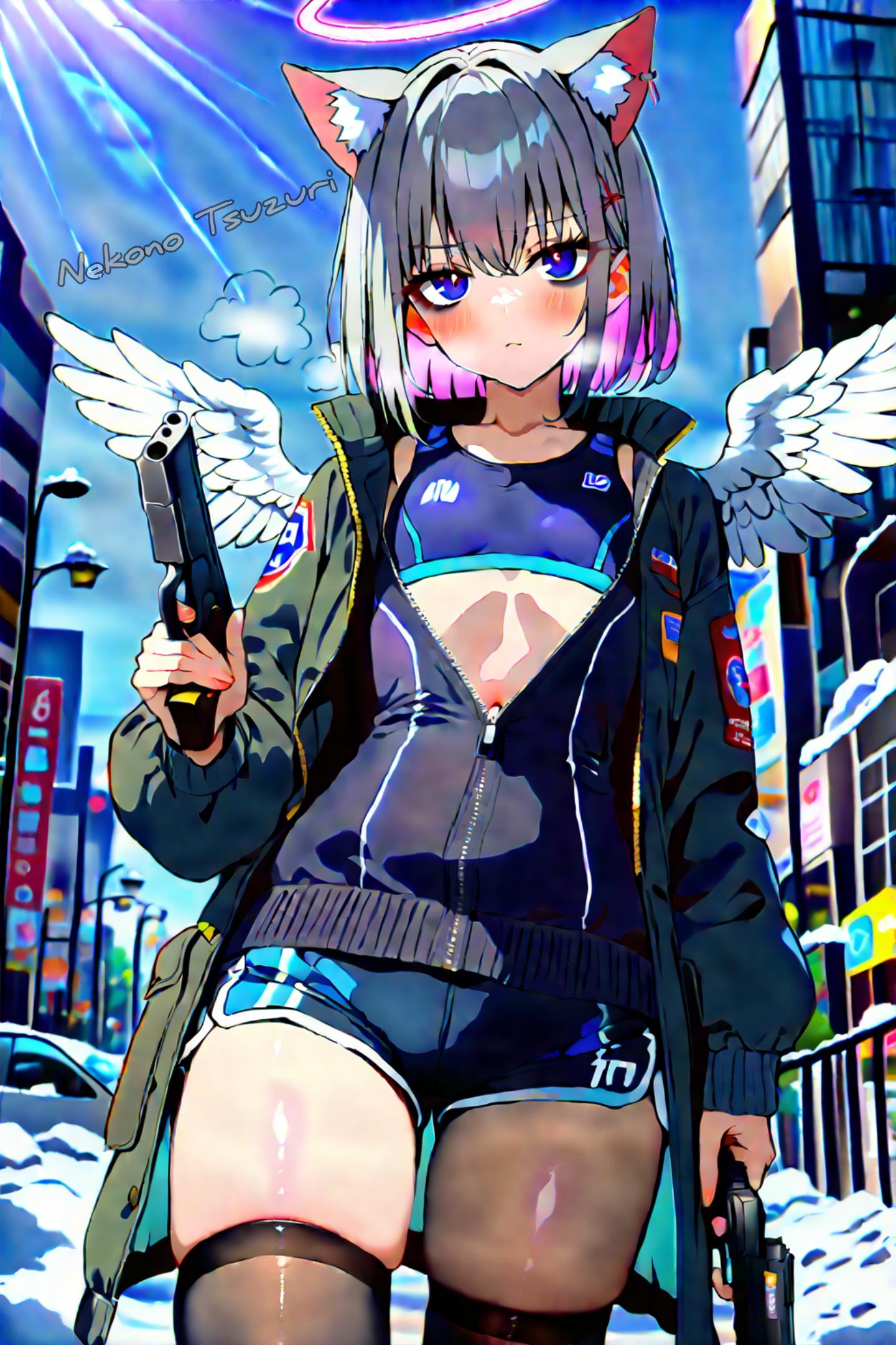 雪の街をパトロールする猫耳天使 ルドナエル 【CosmosOrder】
