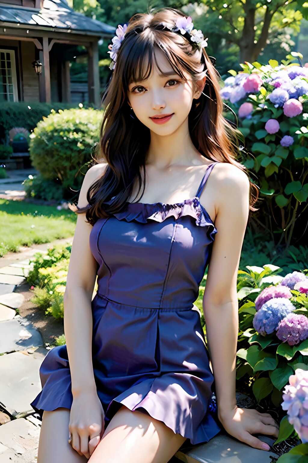 紫陽花を見にフリルワンピで08