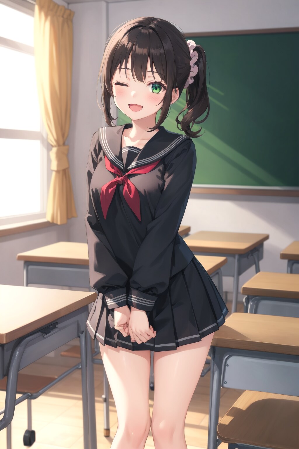 当初はサイドテールと三つ編みを一緒した髪型での投稿を考えてましたが以前作った同じサイドテールのれもちゃんと同じように作成を試みてもどのモデルでもどこの生成プラットフォームでも一緒に出てくれず、諦めました(汗)。
