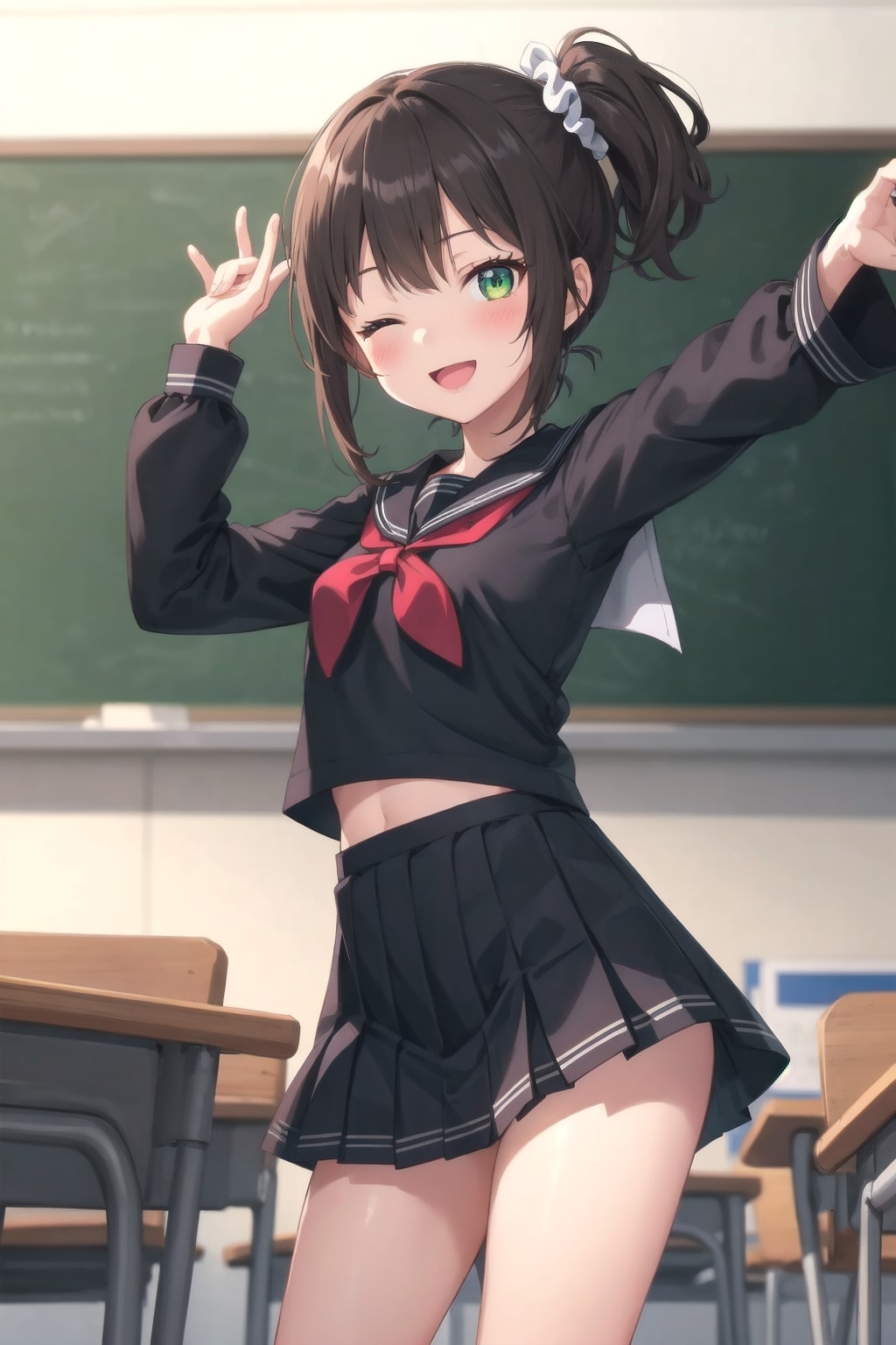 4枚目以降は提供されてる元のプロンプトを少し変えて生成してみましたが、強調がなくなるとサイドポニーが小さくなったり雰囲気も変わってしまって再現ができないことがよくわかりました(汗)。