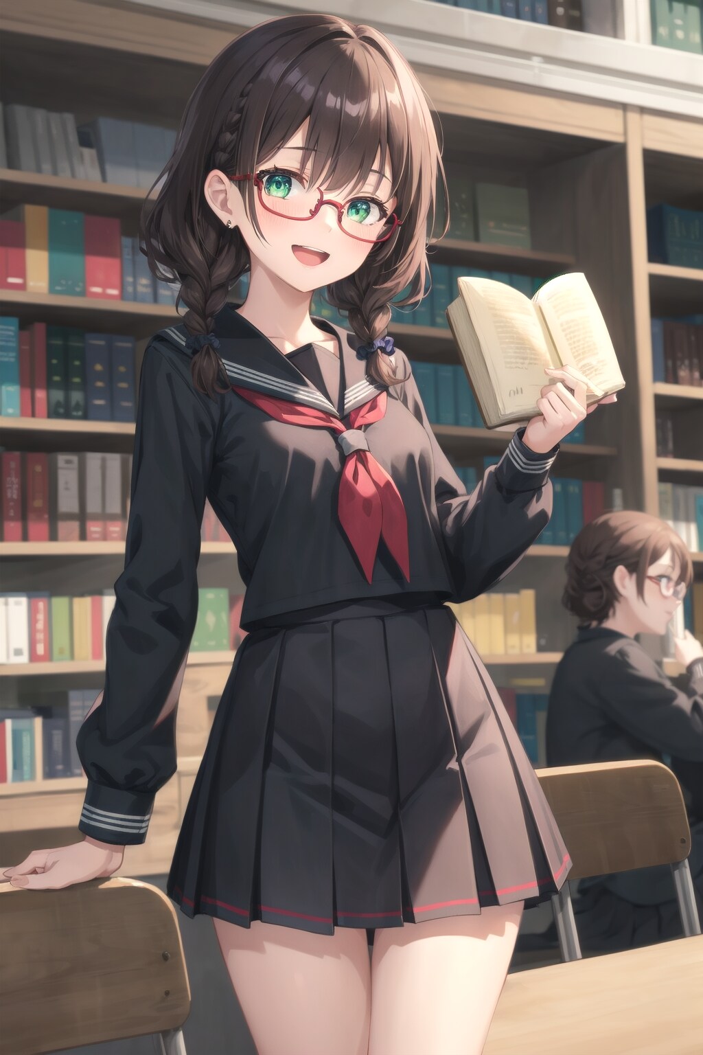 V4Bの生成で別個での制作に切り替え、うちの子たち同様V4Bがメインっぽいので何か違う方向性を考えましたが、とりあえず図書委員になっていただきました。