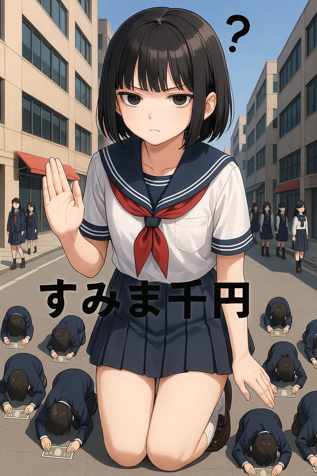 大女子高生の声音が街に落ちた瞬間、周囲に集まっていた生徒たちは、いっせいに地面へ額をこすりつけた。