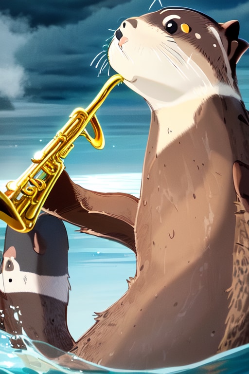 なのでラッコにラッパを吹かせるイラストを生成しました(*'▽')