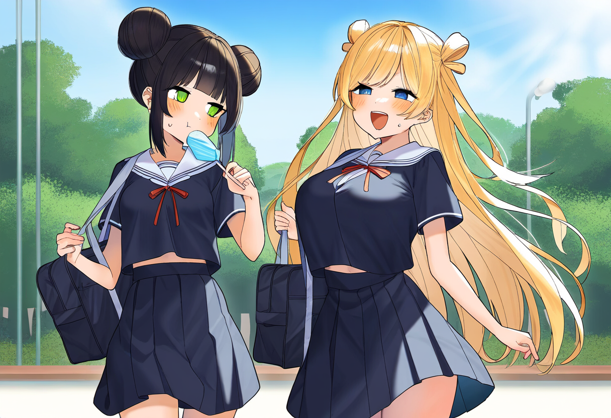 それぞれ看板娘同士、看板娘の彼女同士の下校風景です。