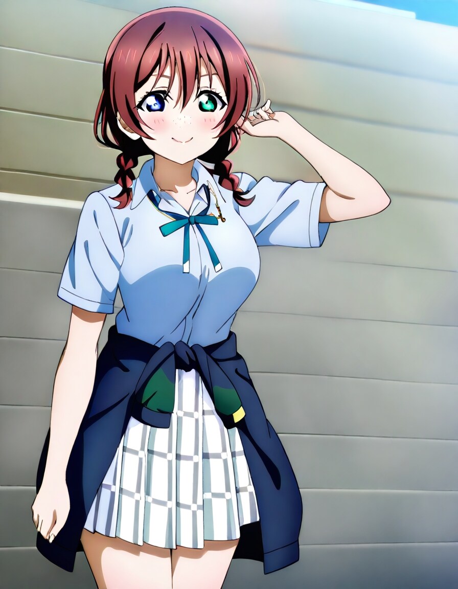 ニジガクのエマ・ヴェルデちゃんが璃奈ちゃんのパーカーを腰に巻いている3