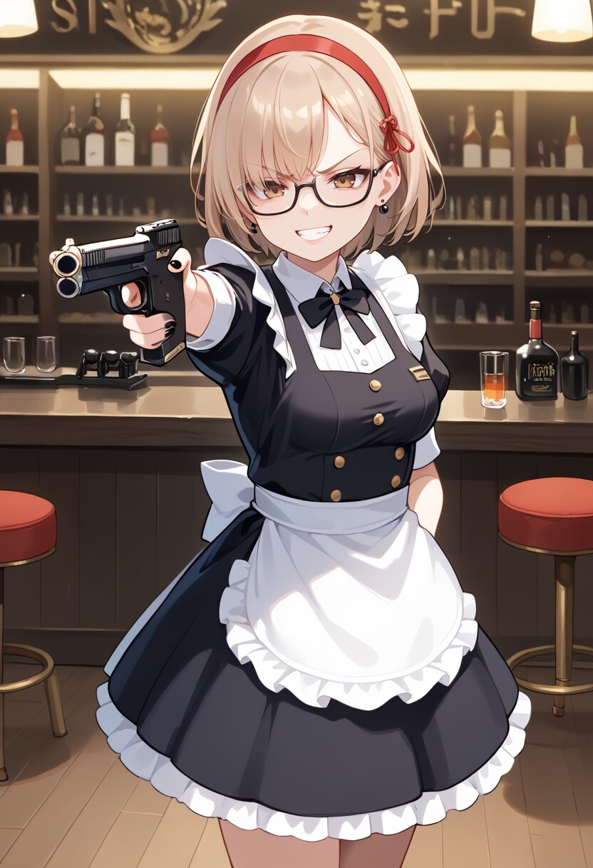 めっちゃくちゃ目つき悪くして、ギザ歯で悪く見せたイメージはブラックラグーンのロベルタ