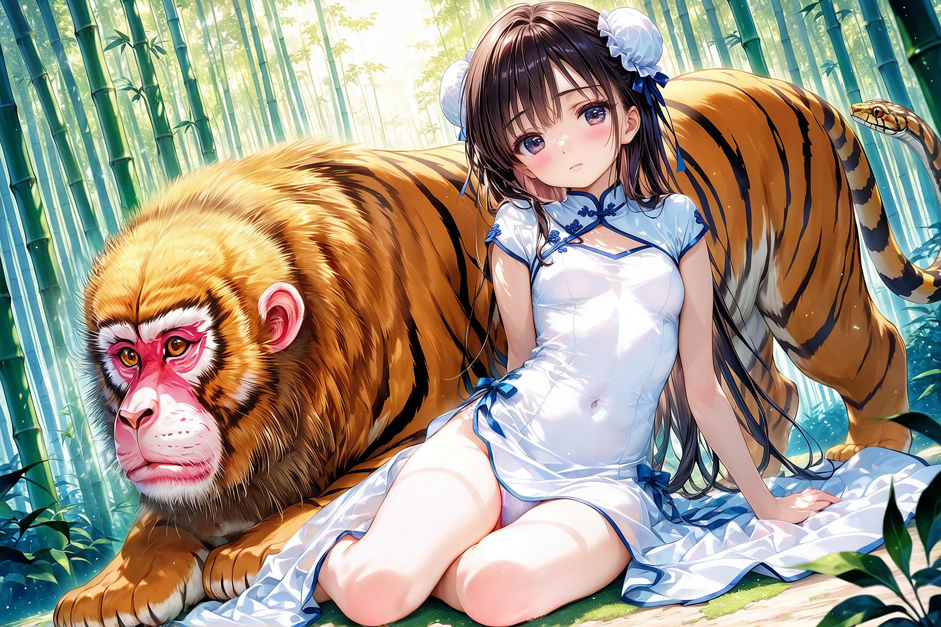 女の子はマイキャラ「メイリン」の幼い頃です。鵺は日本の妖怪ですがイメージ的に合いそうなので