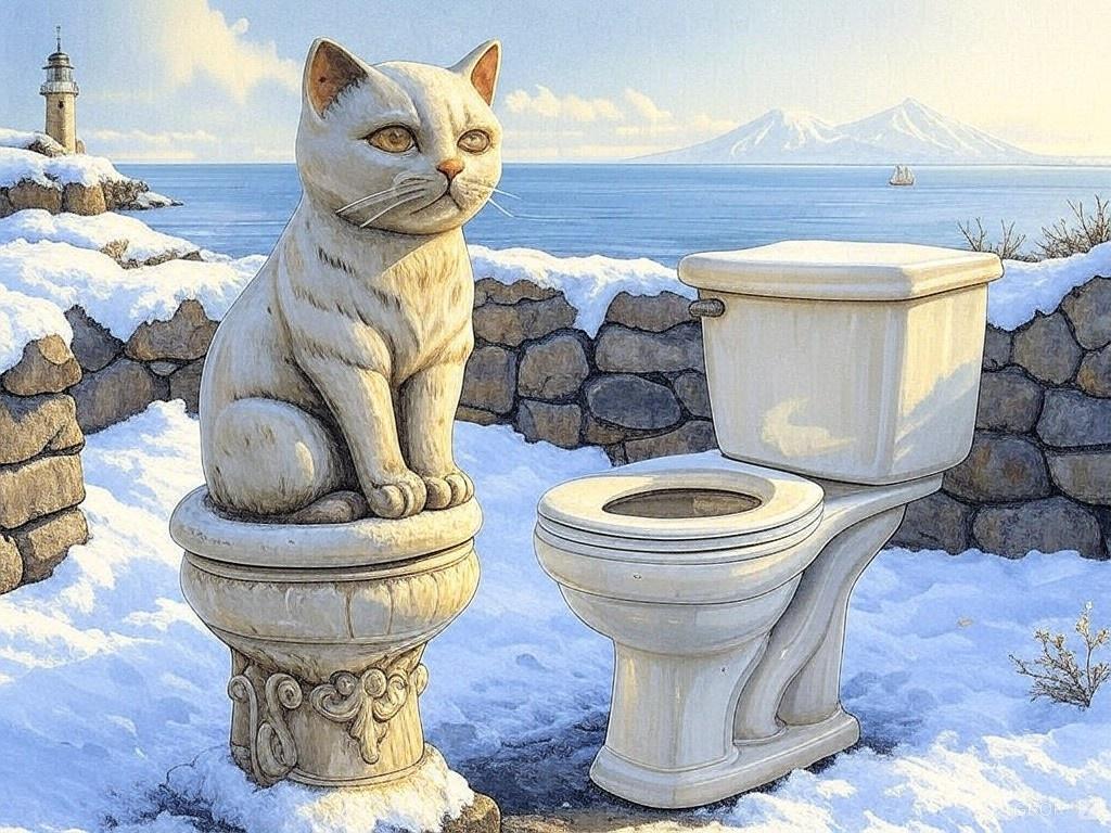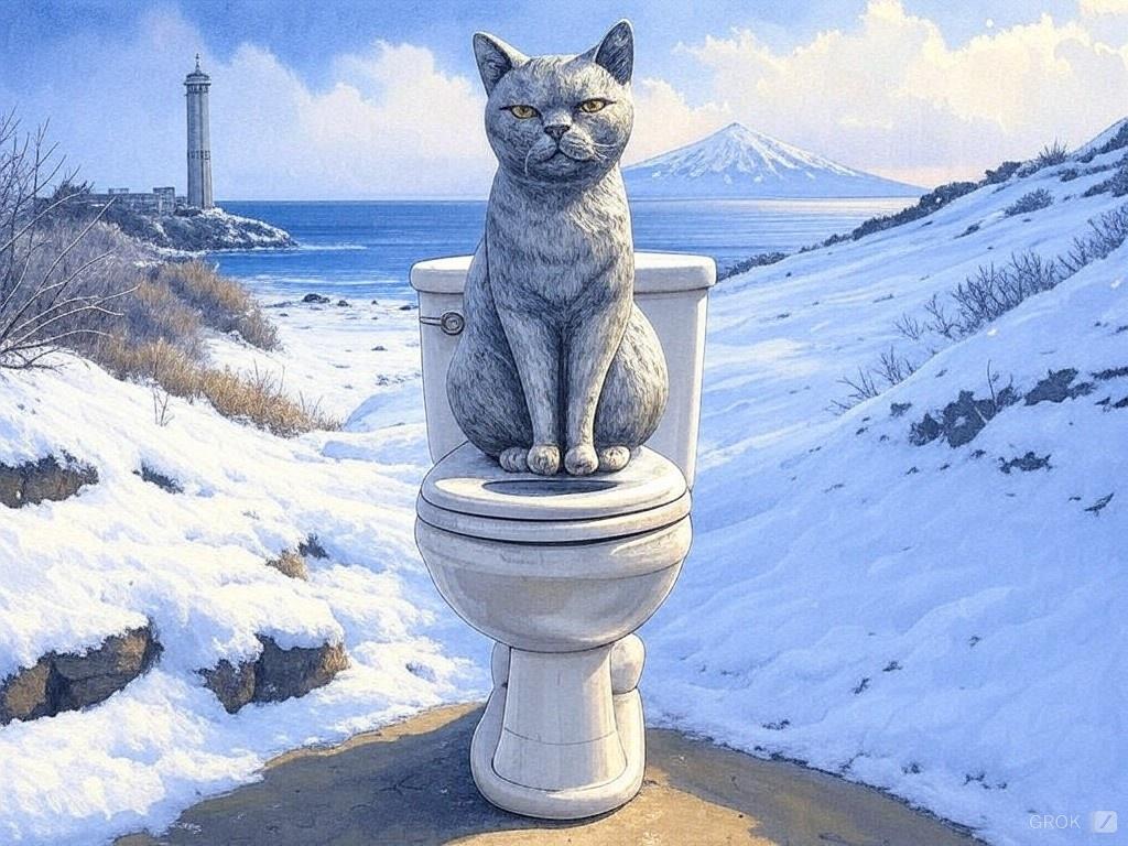 考える猫とトイレ像は1つではなく、互いの国の至るところに建てられており、平和の喜びを当時の人たちは抱いていたことが、彫像を通して伝わる。