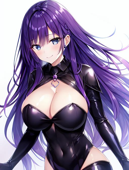 紫髪☓ボンデージ風衣装の爆乳お姉さん