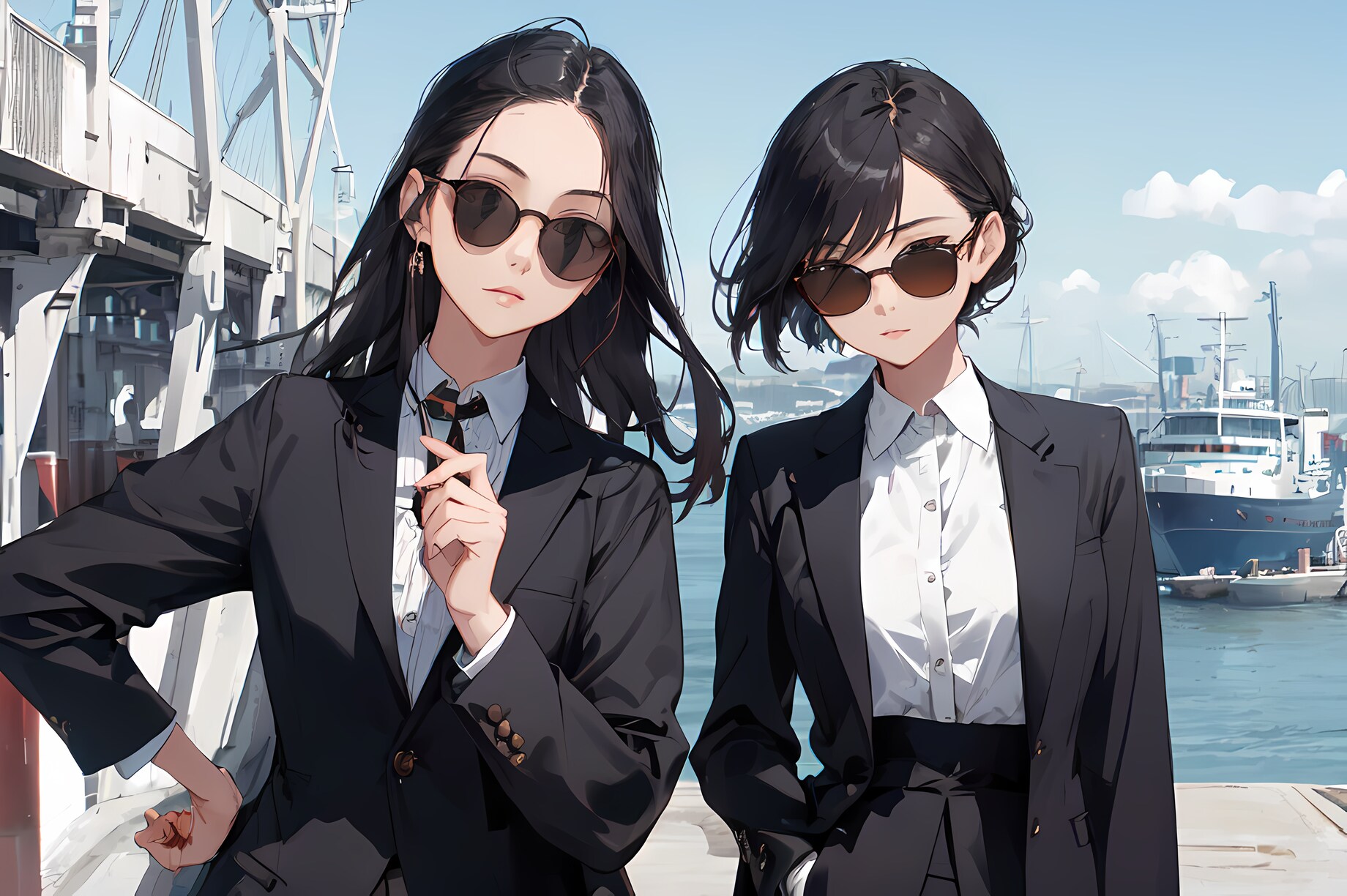 人気のタグを見て生成。サングラスには港が良く似合う。