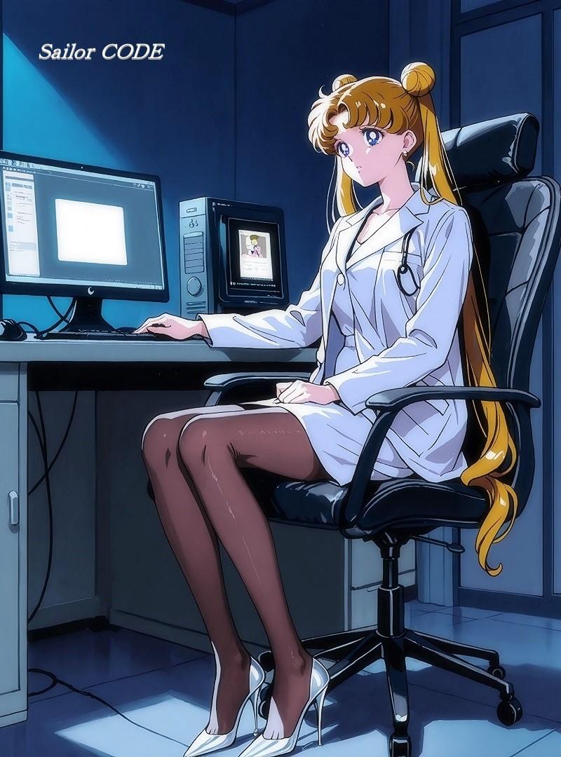 彼女の白衣は祈り、ヒールは断罪、そしてその瞳は、慈悲と死を同時に映し出している。