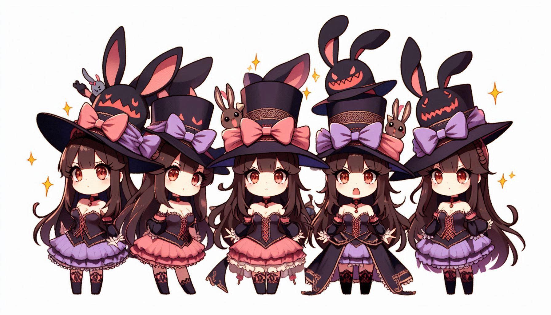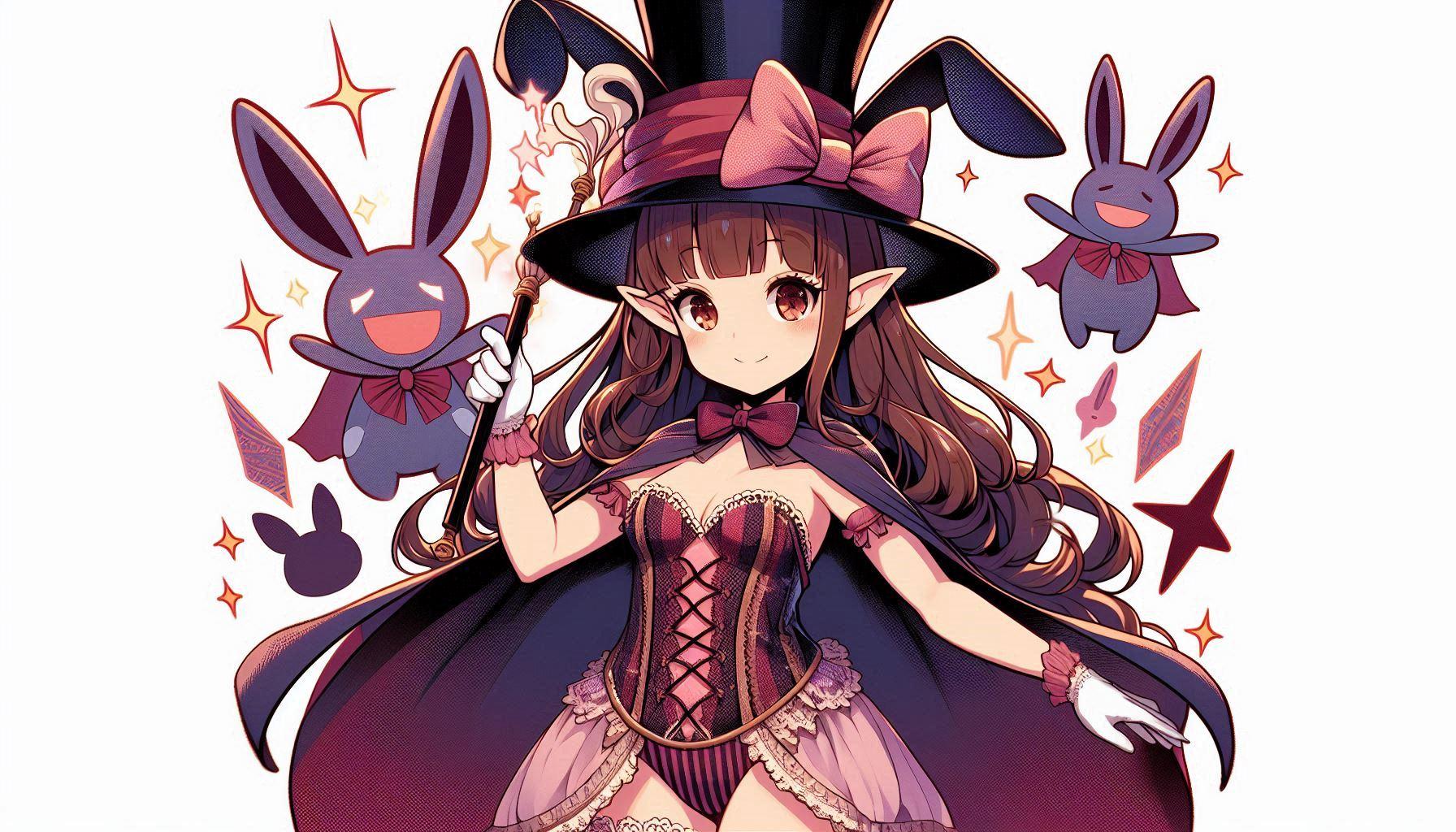 エルフっ娘マジシャンと五つ子マジション♪(Dalle先生のバニーっぽい女の子♪)