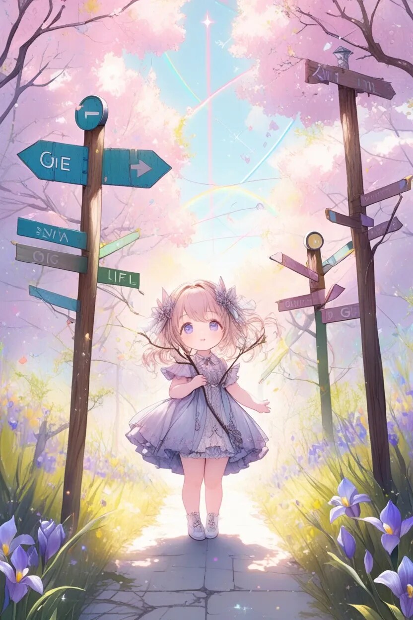 Signposts by wood, metal and conceptual objects. Consists of straight lines, curves and branches. Very difficult after go astray.