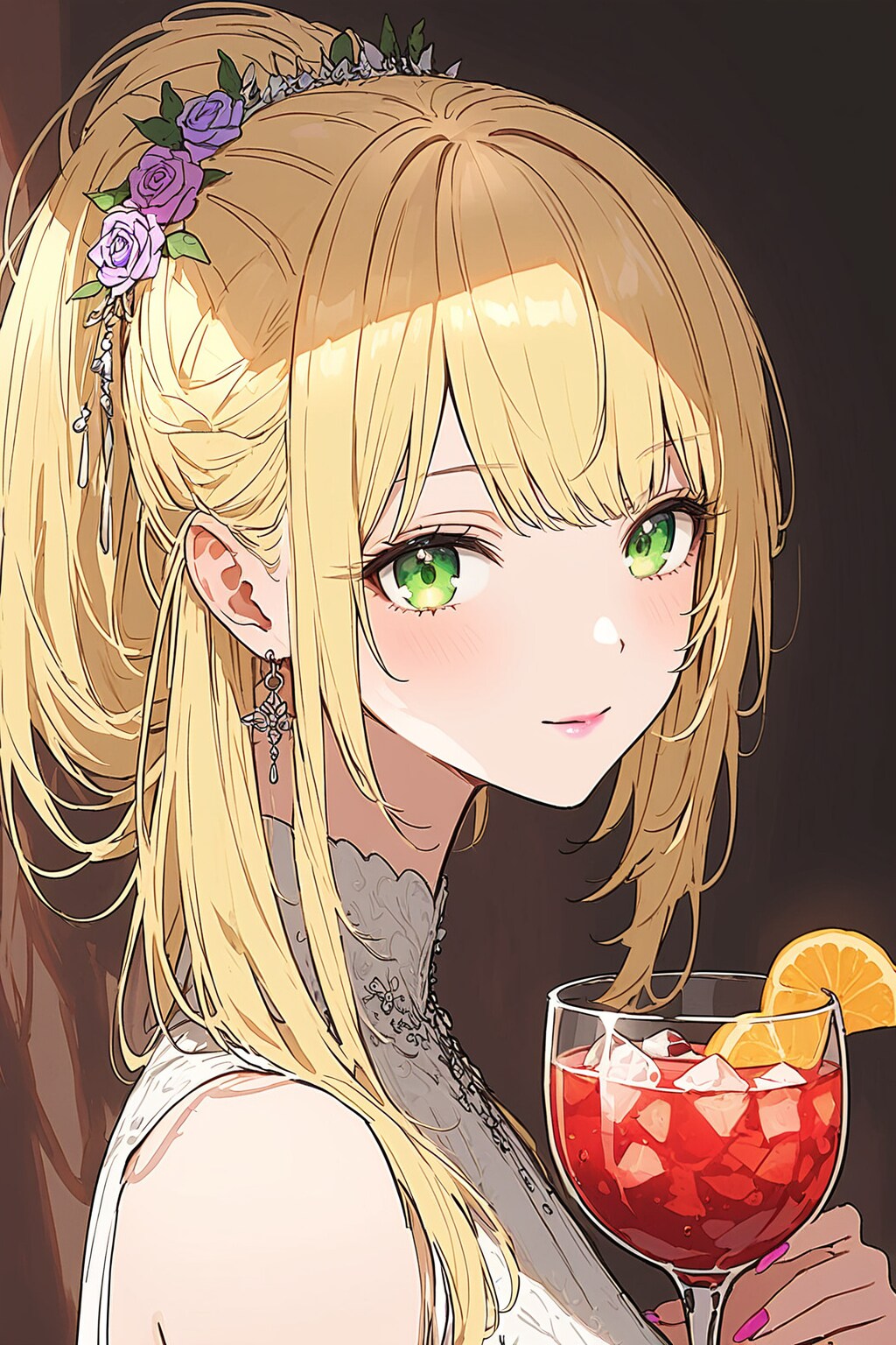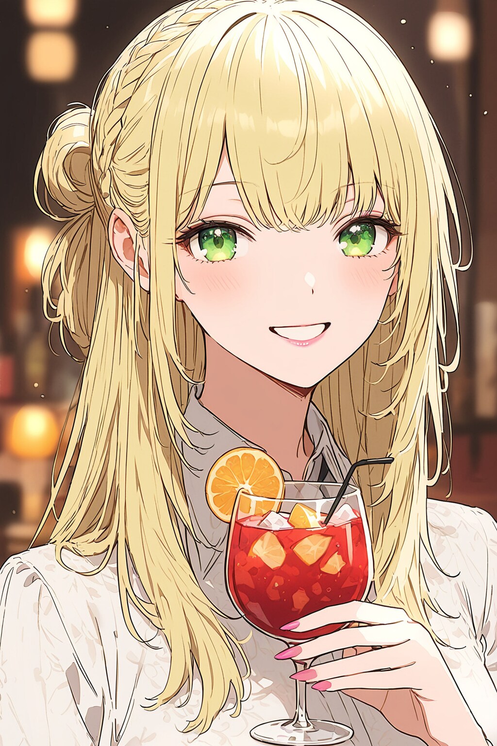 最初は別のカクテルを考えていたのですが、ちょっとアンニュイな凪咲さんが出力されたのを見て方針変更。