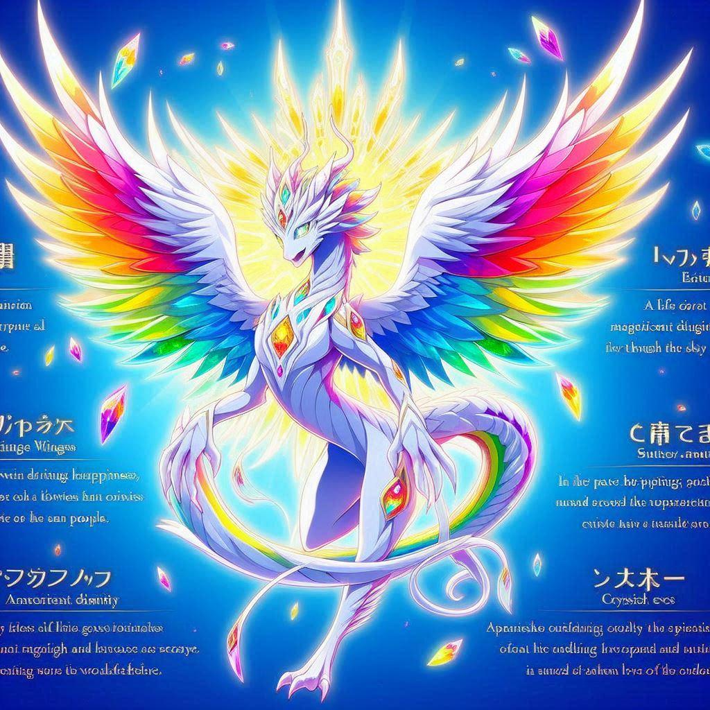 生態・説明:全ての生命の過去と現在と未来に存在する、4枚の虹色の羽根を持つ、