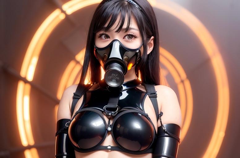 全年齢向け、ガスマスクを着けたAIボンテージ美女