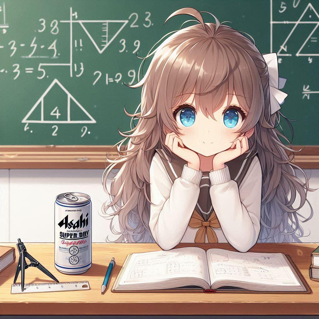 三角定規、分度器、アサヒスーパードライ、コンパス…