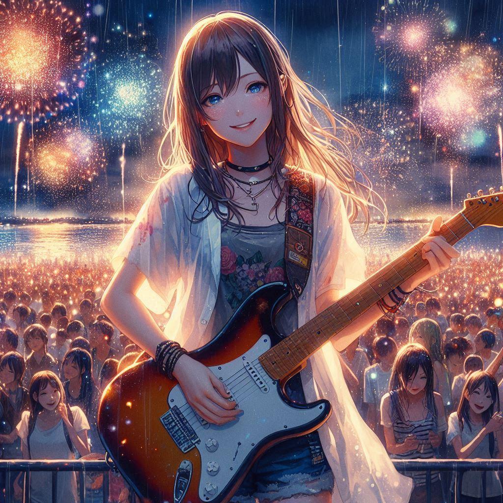 その光景とは違うものの、花火が上がると綺麗だろうなと思い生成します。