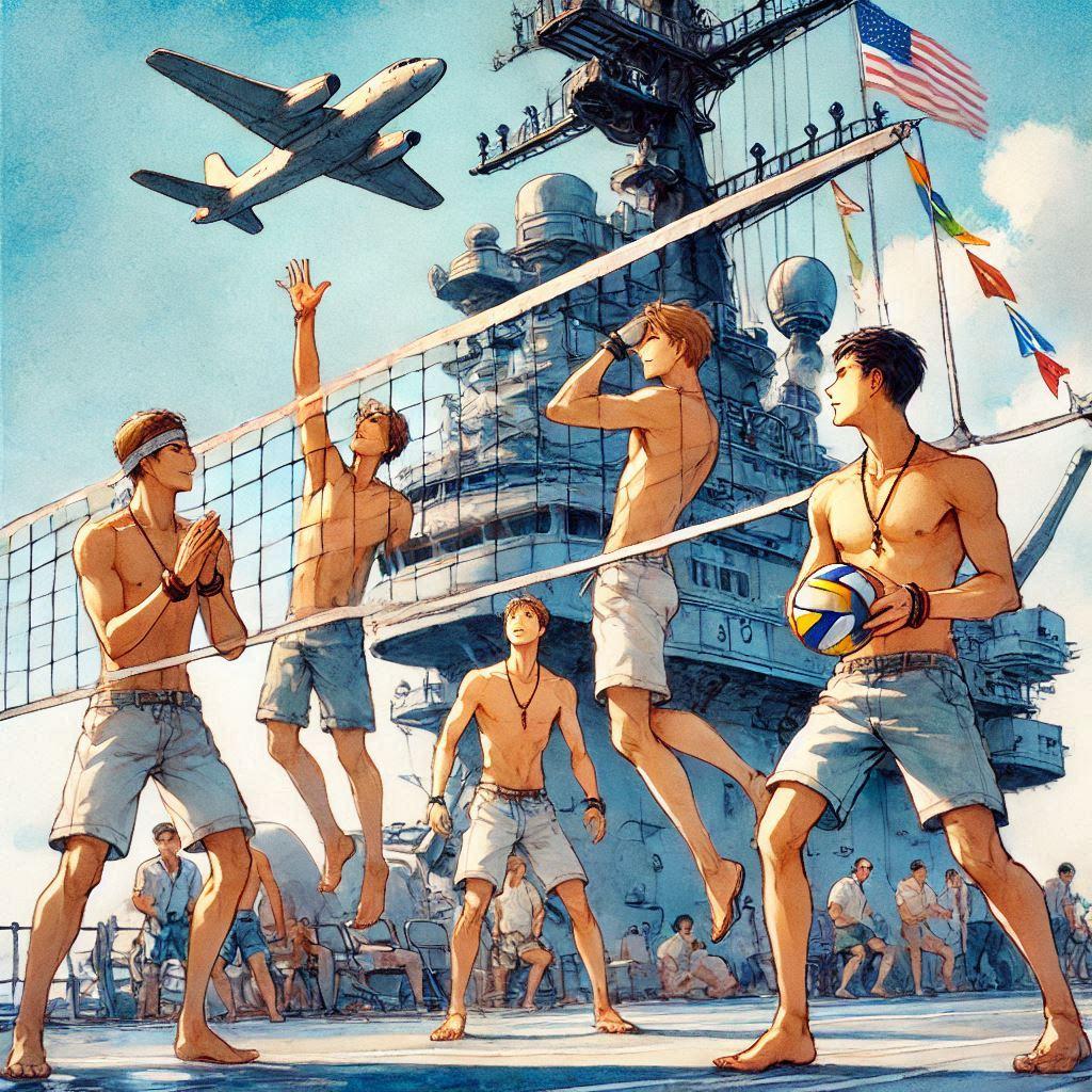 空母でビーチバレー