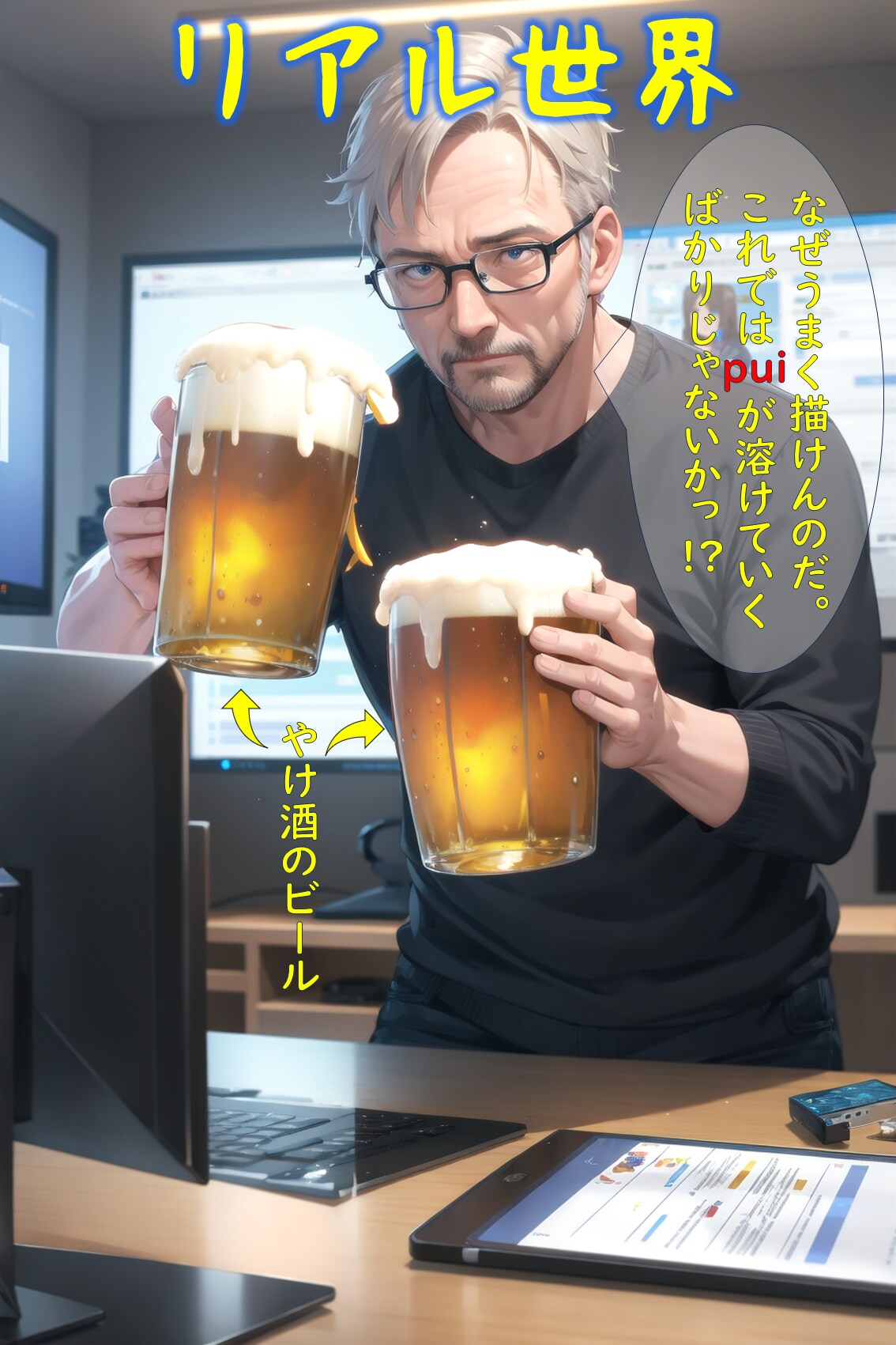 余談ですが、「なぜうまく描けんのだ。」の台詞に「坊やだからさ」と、セルフツッコミを入れながら大体こんな感じで飲みながら制作しましたw