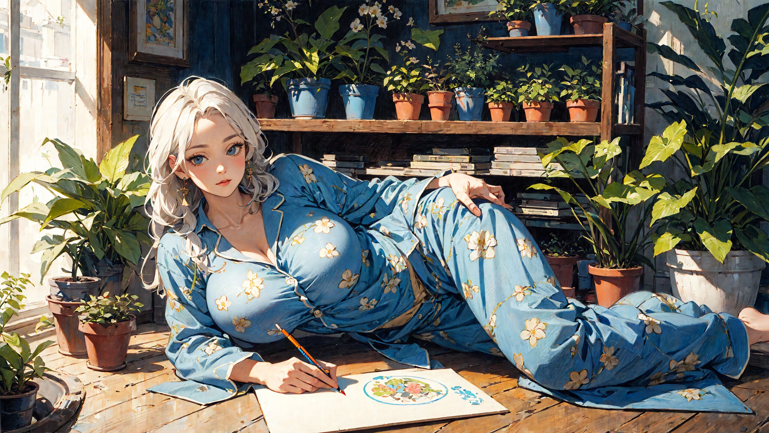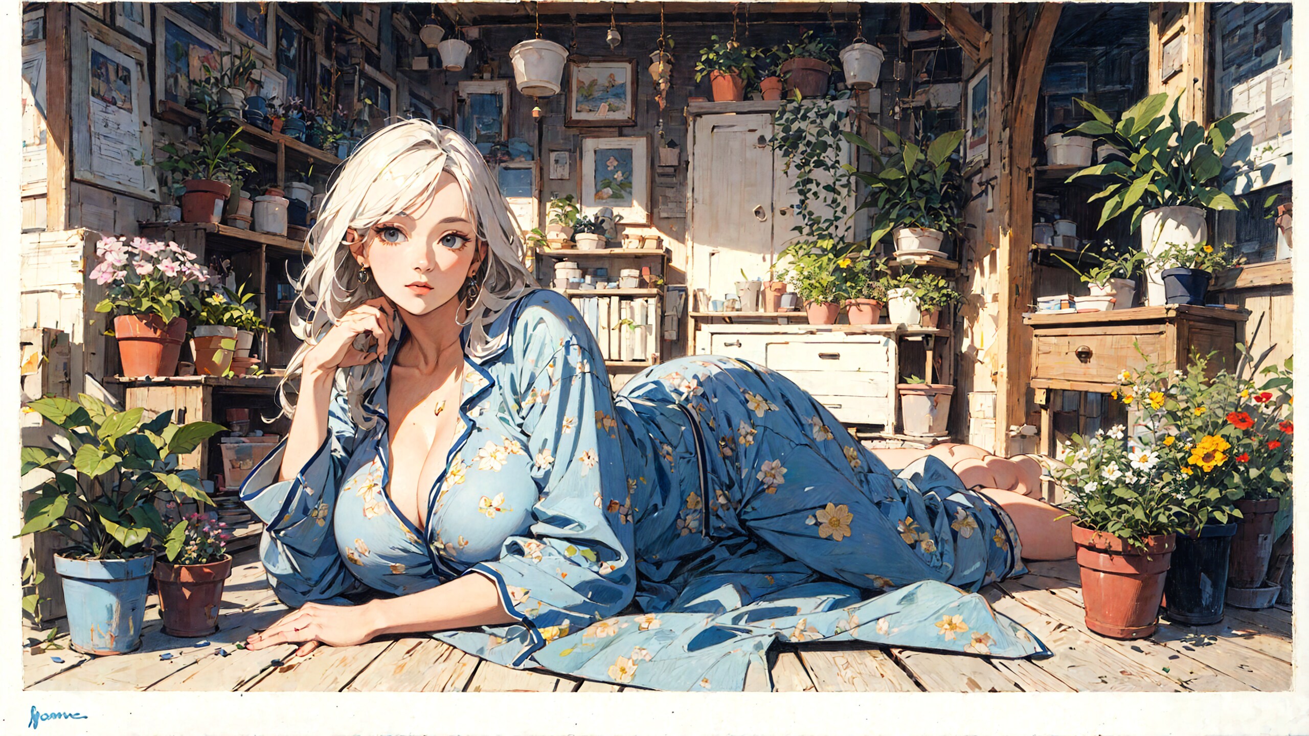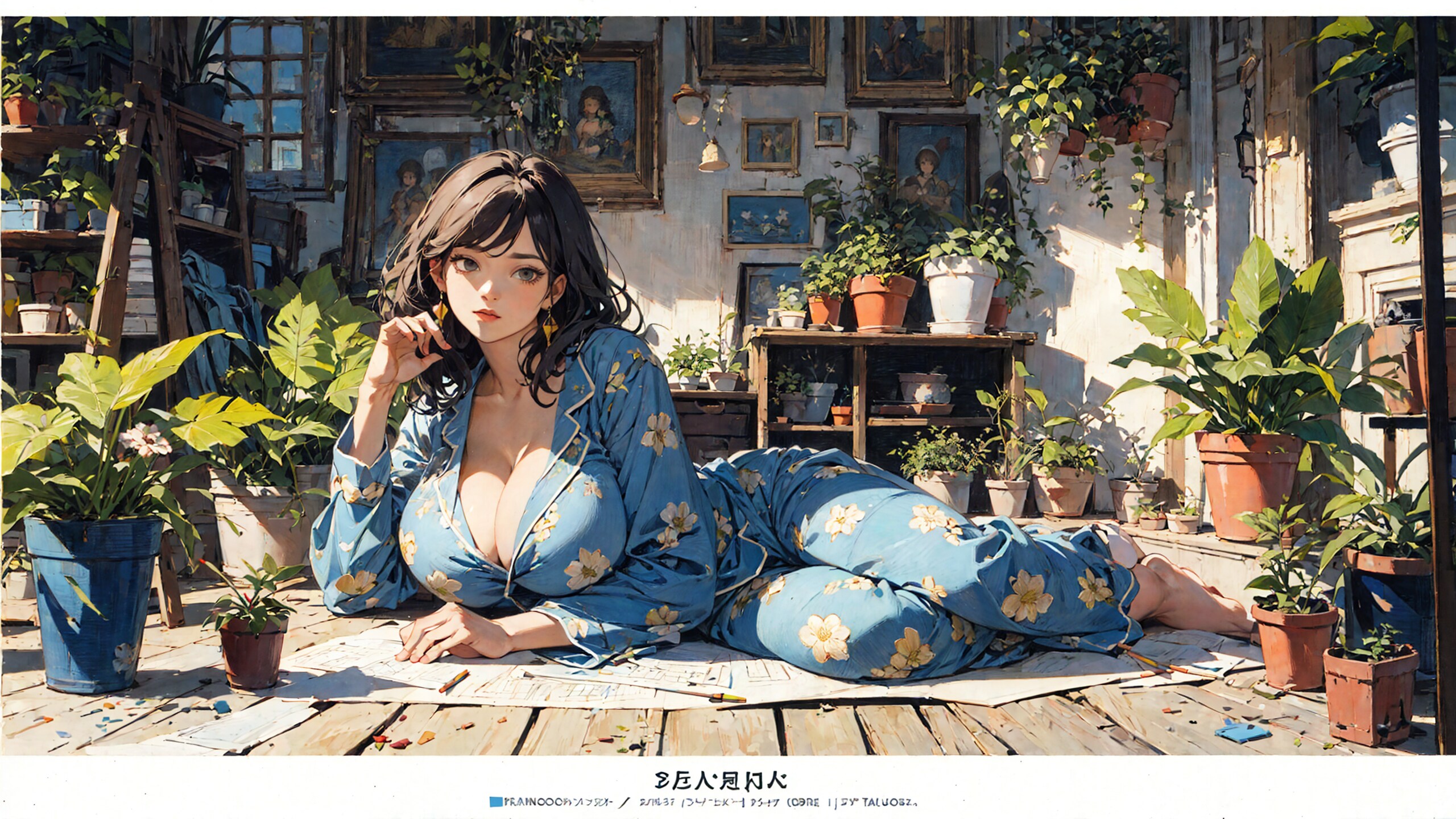 今回のテーマは 花柄の青パジャマの少女さん です!