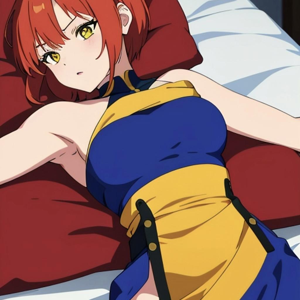① [R15]赤髪スリットスカート(仰向け)_20231009 (28いいね)
