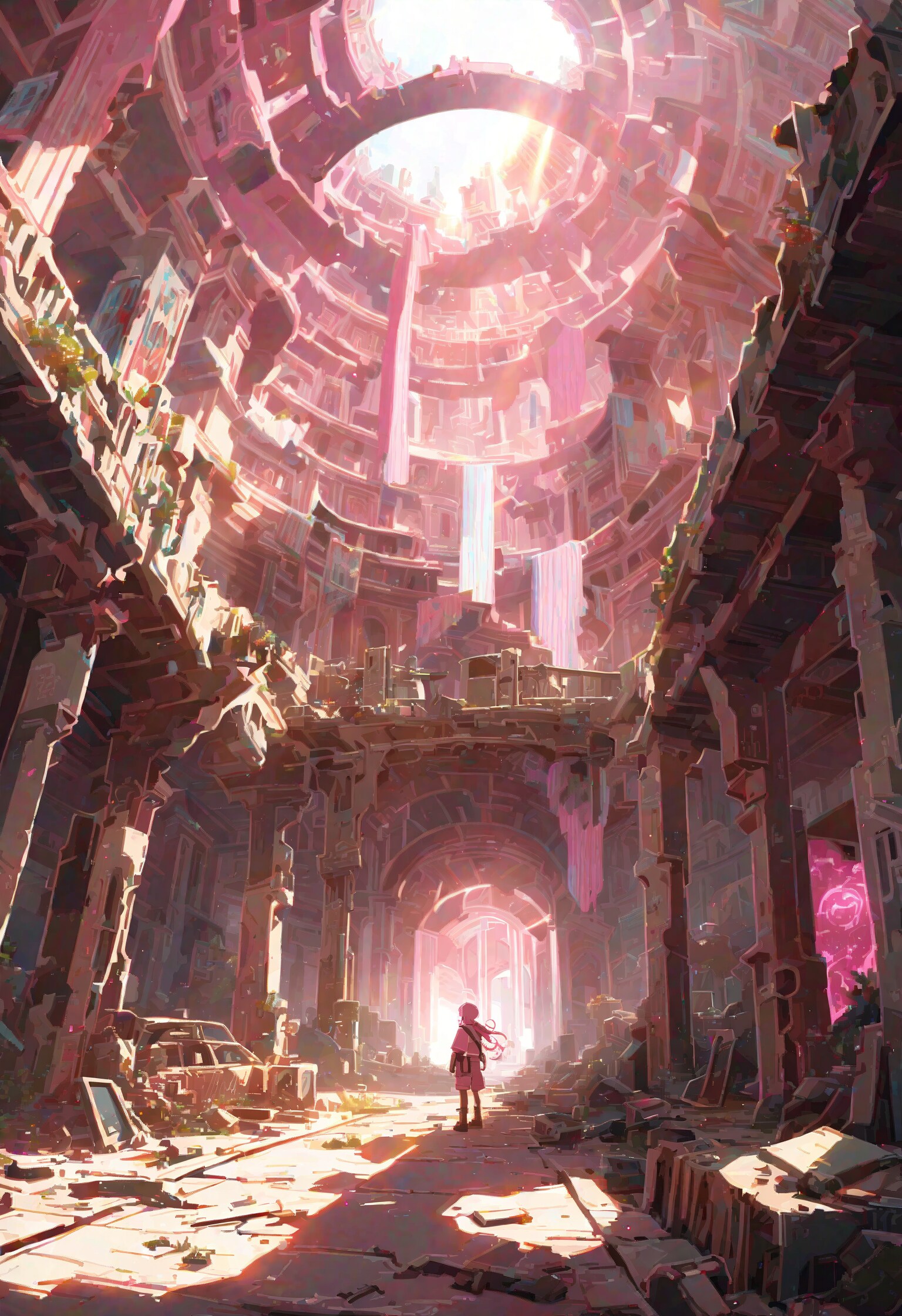 この場所に立つと、かつての栄光が崩れ去った後の静寂が身に染みる。光が差し込む天井の開口部から、かすかな希望の光が見えるが、周囲の廃墟がその希望を打ち消すように感じる。私はただ、ここに立ち尽くす