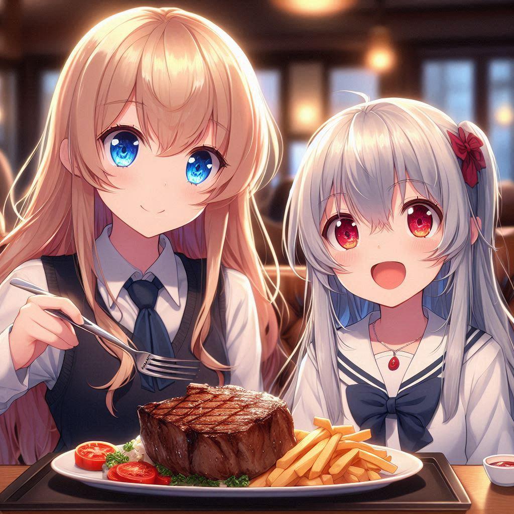 子供組にして一応姉妹(ナミちゃん&アイちゃん)の肉の日イラスト!
