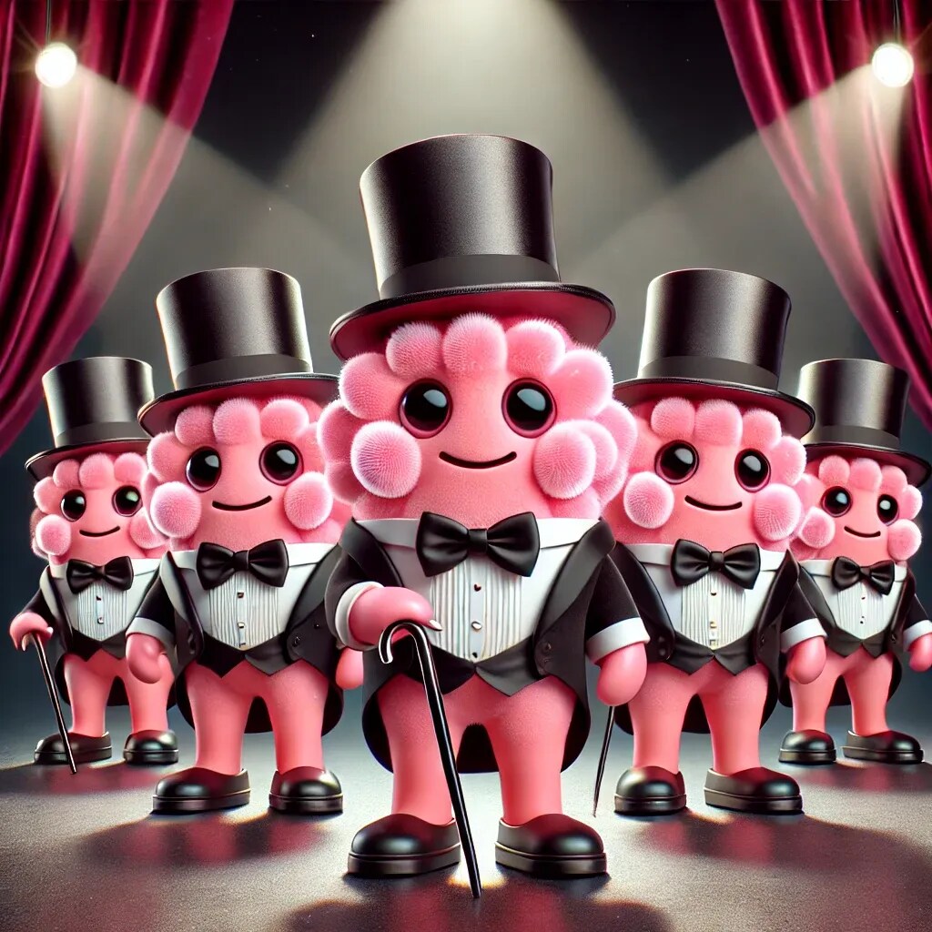 杖の先がほんのりピンクに輝いていて、まるでマジカルレビューの一幕のようですね。