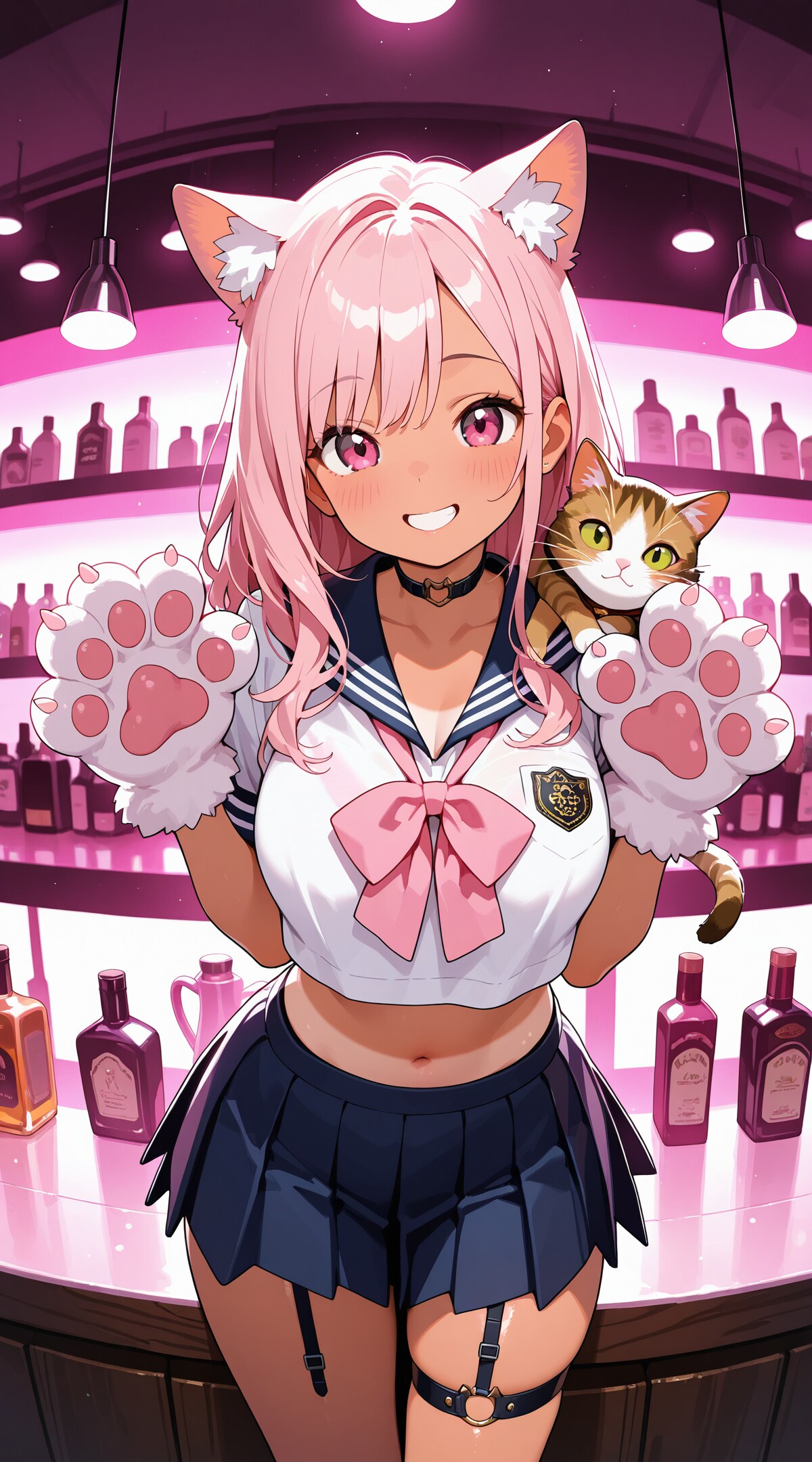 耳もリボンも、メイド風の制服も、照明も……なにそのピンク×お色気×癒し力MAXのトリプルコンボっ!?