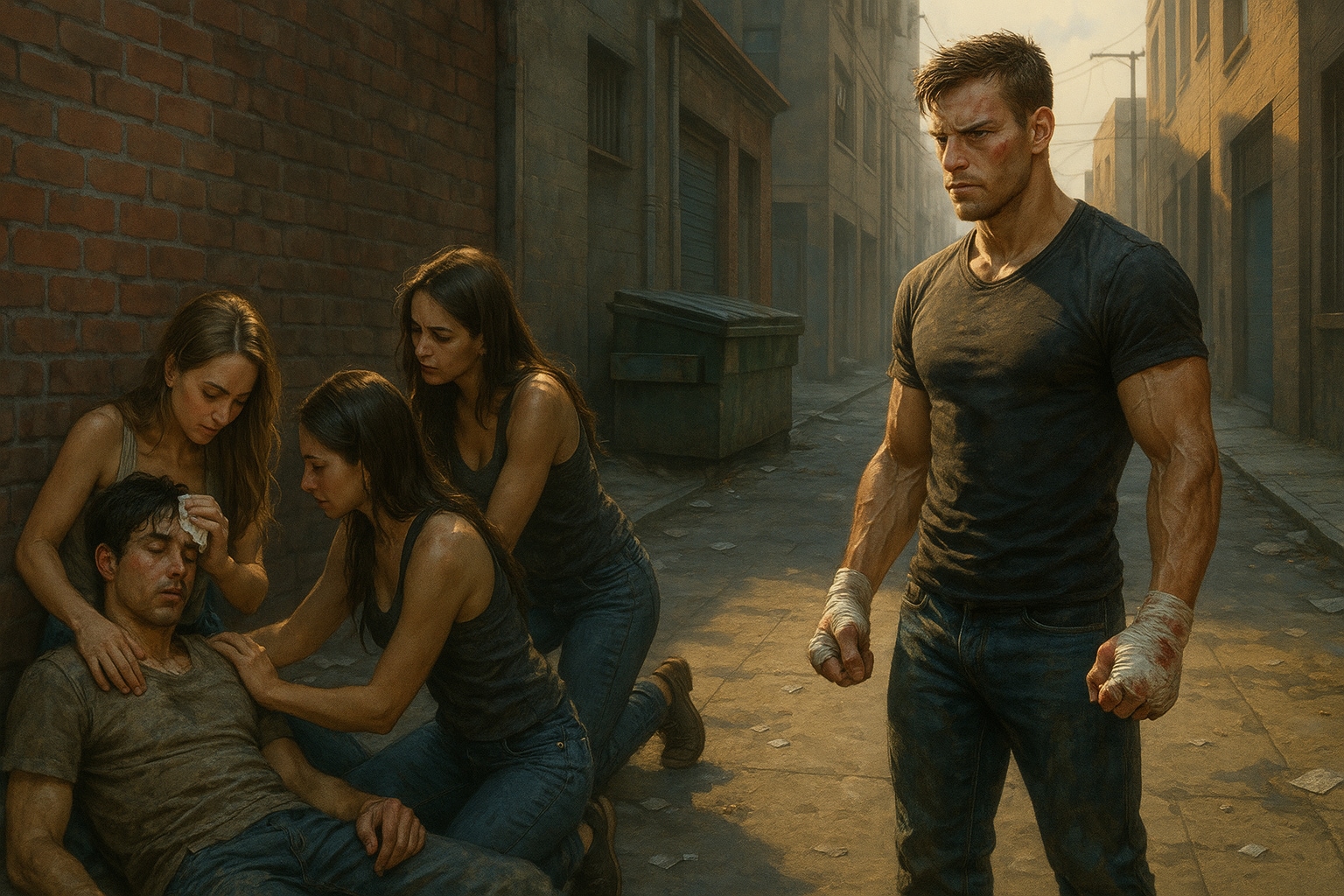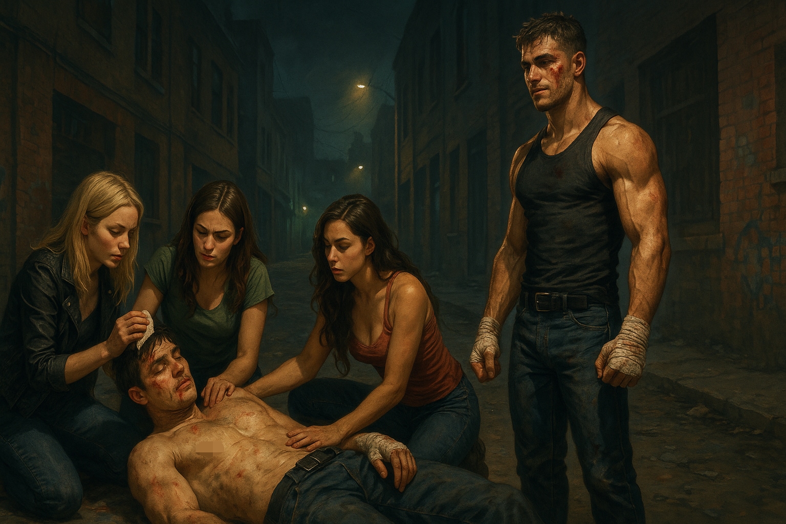 敗者は美女数人で手当てを受けている