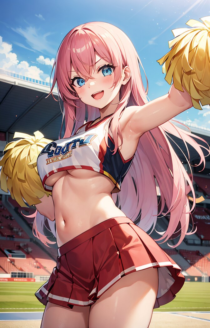 7:(((Cheerleader)), outdoor, stadium, チアリーダー。手のボンボンまでセットで付いてくる。