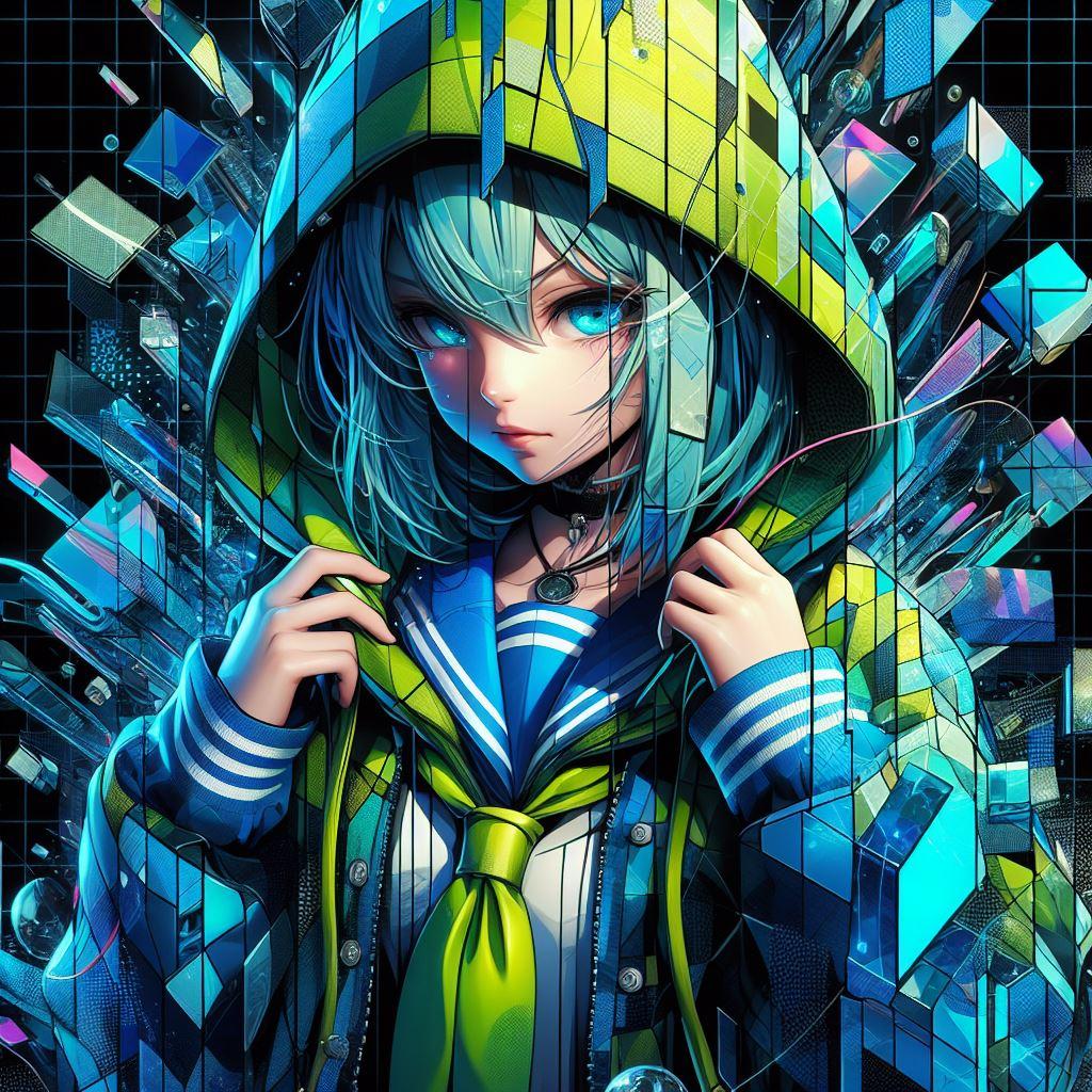 紺に合う色をCopilotに聞いてライムグリーンと合わせてみました。